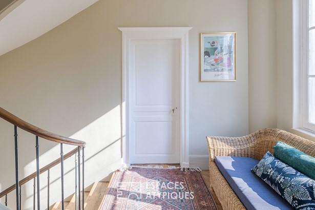Bathed in light thanks to its south-facing exposure and carefully renovated, this residence delicately combines classic elegance with modern comfort. It features six bedrooms, two offices, a dining room, a separate kitchen, a utility room/laundry room, as well as two shower rooms, a bathroom, three toilets, and a cellar.