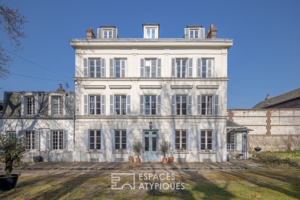 Nestled in lush greenery, this 248 m2 mansion, located in Elbeuf, a former cloth-making town 20 km from Rouen, embodies the timeless charm of a character property.
