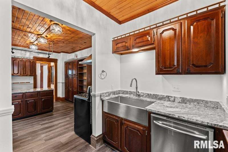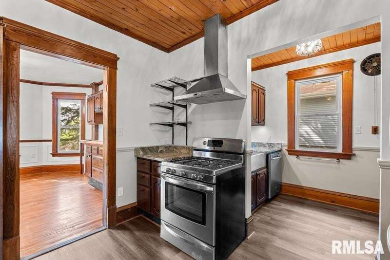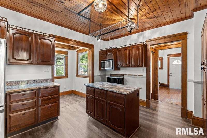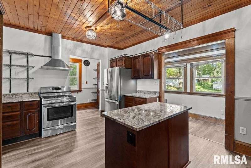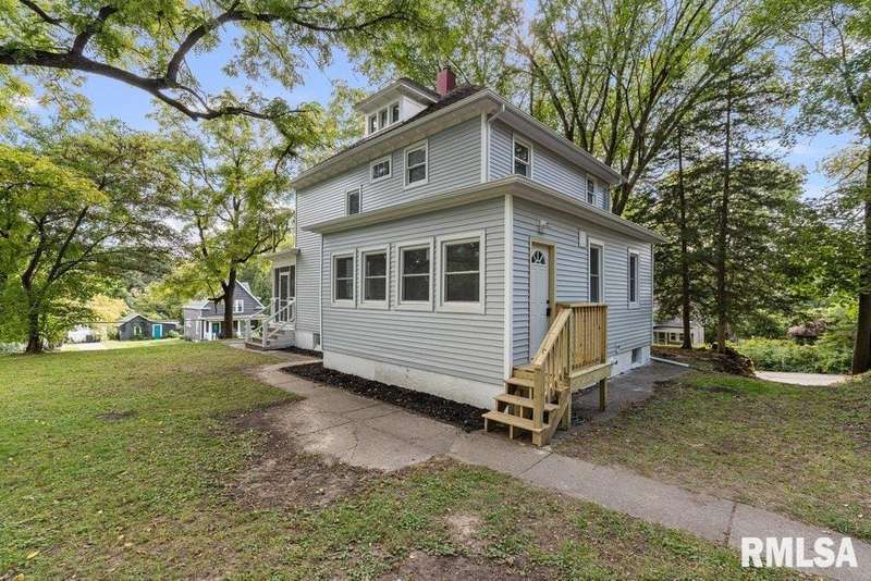 WOW! What a Find! Fully Rehabbed Home Near Black Hawk State Park Welcome to this beautifully updated and move-in ready gem, nestled in a park-like setting surrounded by mature walnut trees. Sitting proudly on a hill, this home offers both character and modern convenience. Major Highlights: Fully remodeled inside and out. New windows, siding, gutters, A/C, and furnace. Brand-new oversized 2-car garage with additional parking slab. Interior Features: Step inside to find stunning natural woodwork, beautiful hardwood floors, and a breathtaking original staircase. The main level features a formal dining room and spacious living room, perfect for entertaining. The updated kitchen boasts: Granite countertops, new stainless steel appliances, abundant cabinetry and storage, a cozy finished sunroom with built-in shelving and buffet. 3 Spacious bedrooms, each with individual heat and A/C units, fresh paint, and new carpet, a fully finished attic, perfect for a bonus room or office, complete with a large cedar closet. A large finished basement with a gas log fireplace and rec room. This home blends charm, comfort, and quality updates in a peaceful setting. You truly must see it in person to appreciate everything it has to offer. Don't miss out! Schedule your private showing today!
