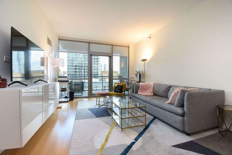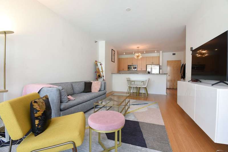 West Loop is Best Loop! Come see this one bedroom at the Emerald and be in the heart of it all! Tenant able to rent unit furnished or un-furnished. Located just a few blocks from Restaurant Row and one block from Mary Bartelme Park, this unit features hardwood floors throughout, stainless steel appliances, modern light-fixtures, in-unit laundry, floor to ceiling windows with custom drapes, large walk-in closet in the bedroom, separate shower and soak tub in the bathroom, and a west-facing, private balcony. Utilities included with rent are heat, air conditioning, gas, water, basic cable, internet, and garbage, while building amenities included feature 24hr doorman, large exercise room, modern lounge and a business center. Located just one block from Greektown and the highway while being steps away from Mariano's, Wild Fork Foods, Walgreens and Whole Foods, this location has it all! Sorry, no pets.
