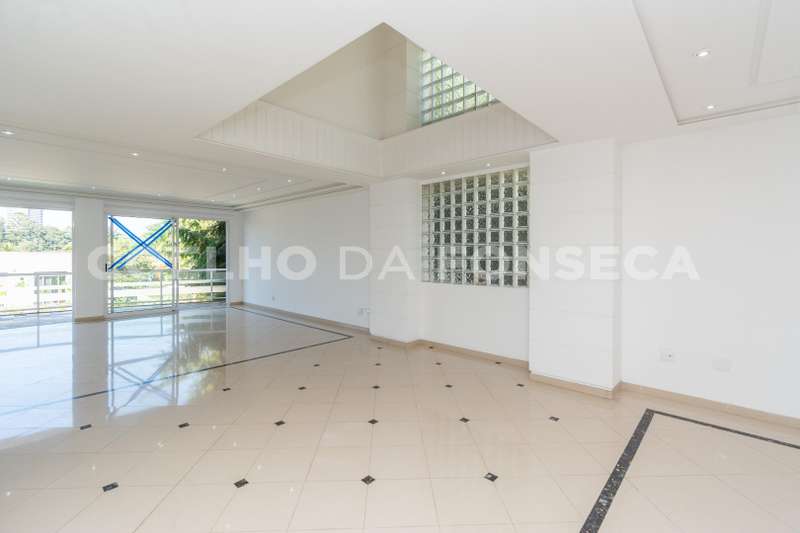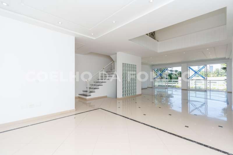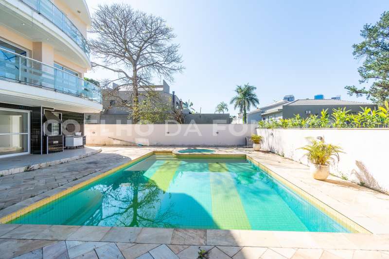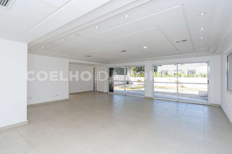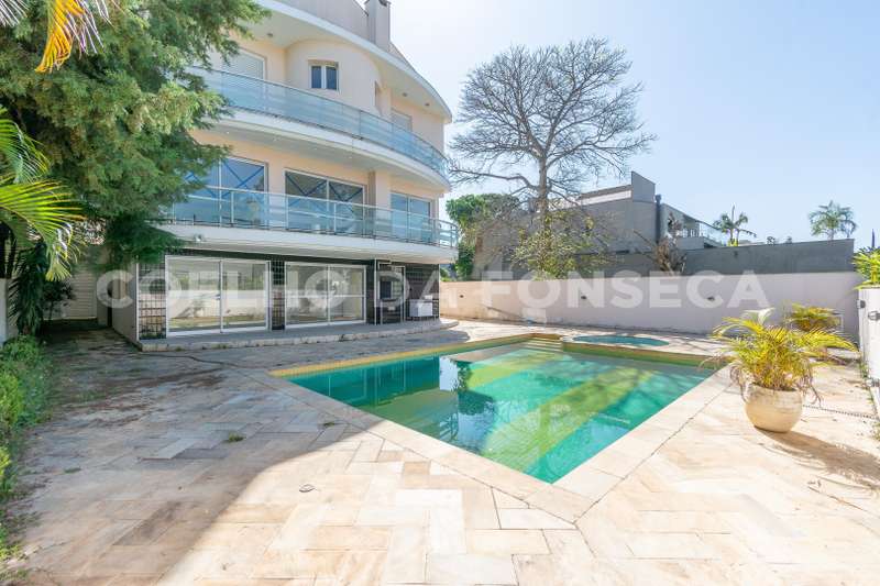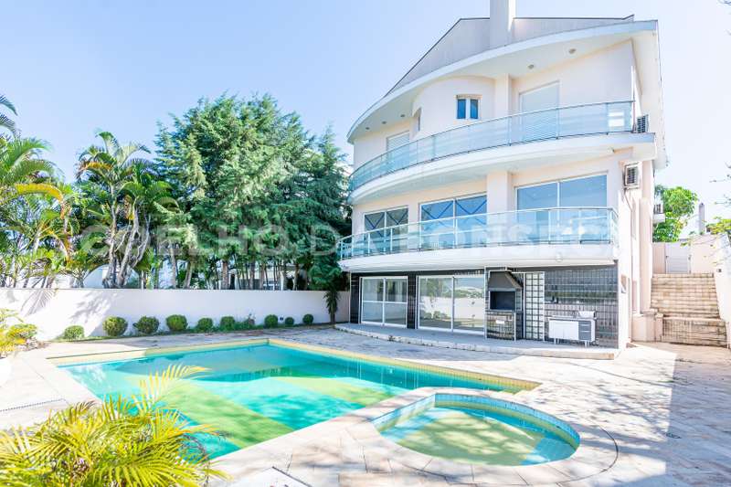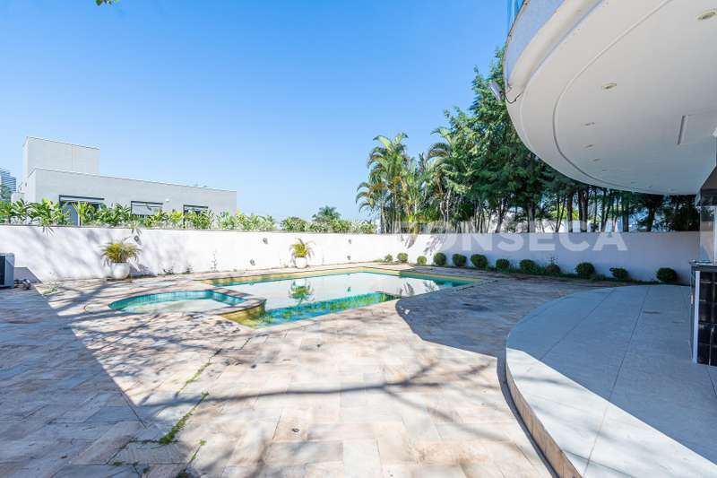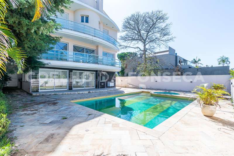 Casa de 750 m² de construção e 540 m² de terreno, com 4 suítes, salas integradas com a varanda e vista para a área de lazer. Imóvel ideal para retrofit; disponível também para locação.