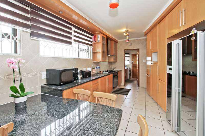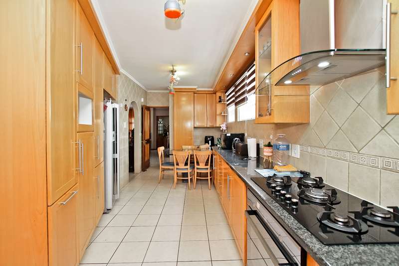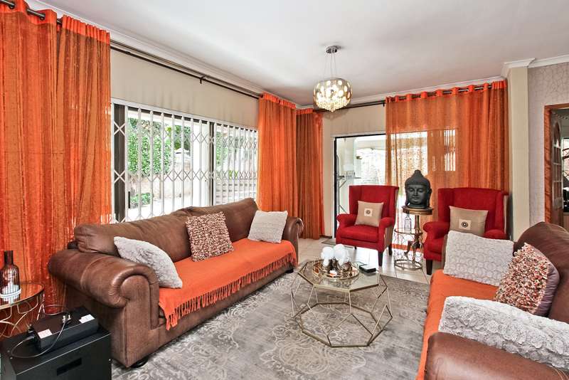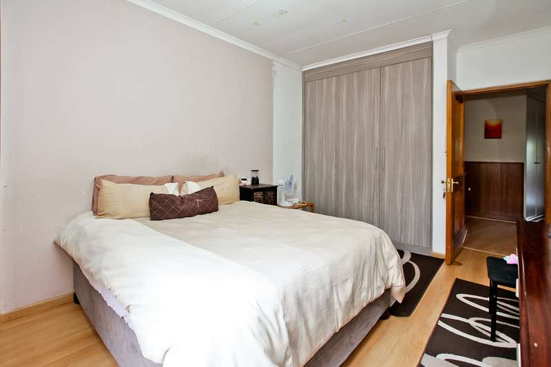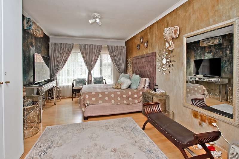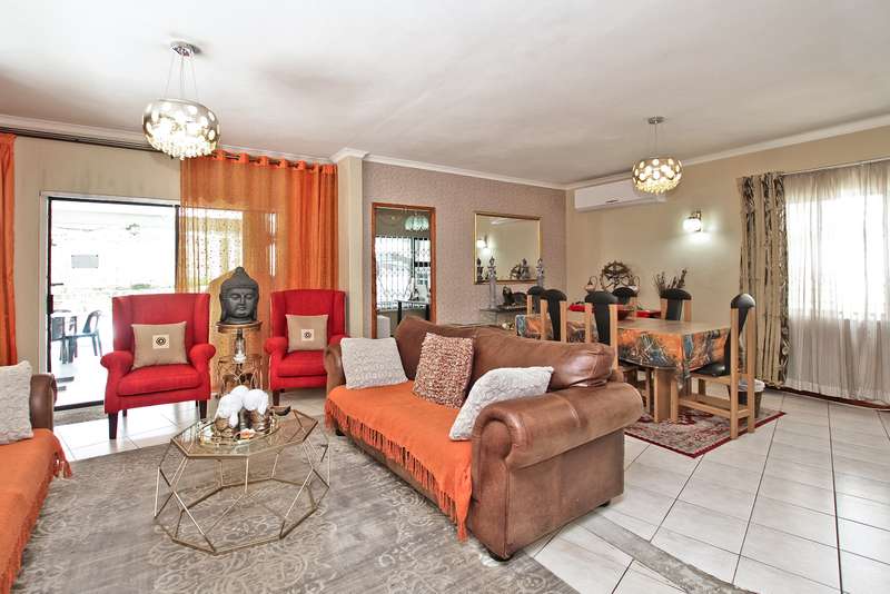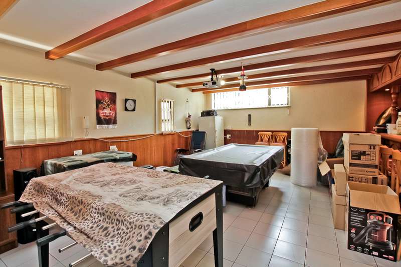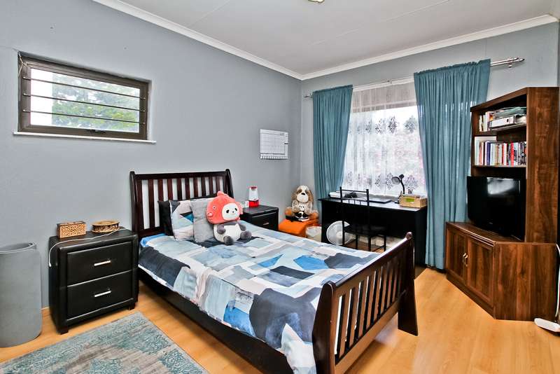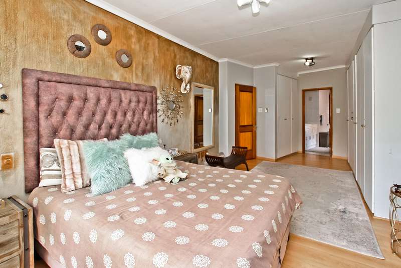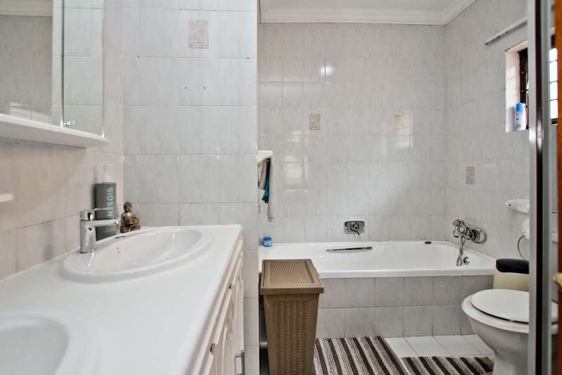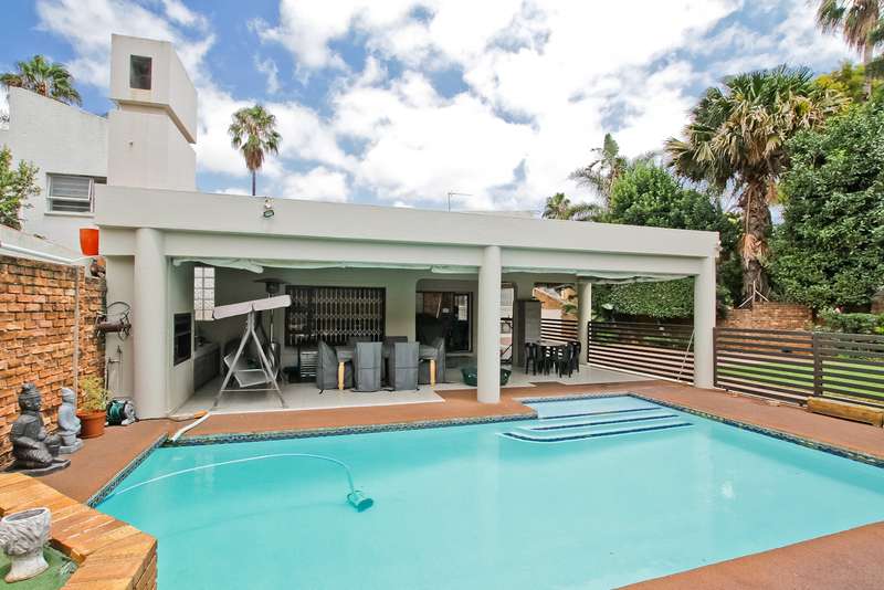 Great for entertaining 4 bed home Situated in a secure complex, only 6 Freehold homes. Low homeowner levy of R400 per month. Open plan lounge/dining room leading to huge covered entertainment patio with built in braai and drop blinds overlooking lovely swimming pool. Eat in granite kitchen with gas hob and scullery. Guest loo and down stairs is a huge games room and bar and loo. Upstairs 4 lovely bedrooms,2 bathrooms (mes). Easy to maintain garden, staff accommodation, tool room, air-conditioning, excellent security features,3 phase electricity. Don’t miss out. Easy access to shopping centres, highways and good schools, 20 mins to OR Tambo airport.