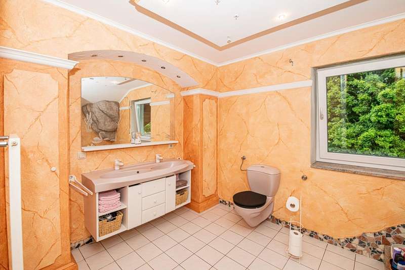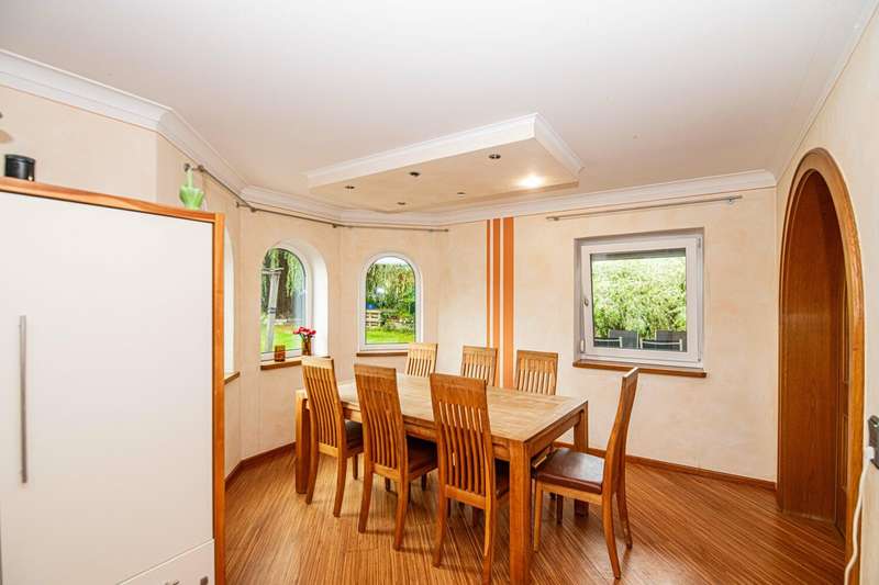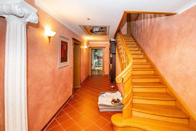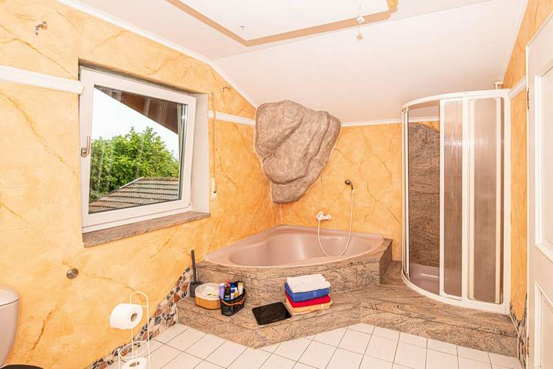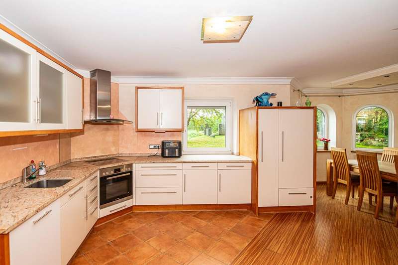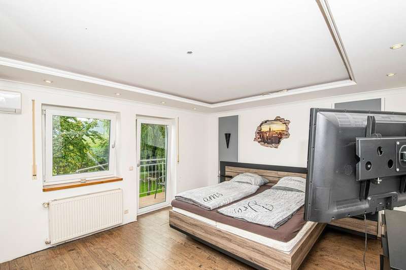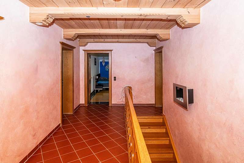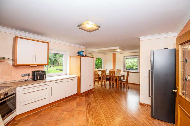 This spacious detached house offers you a rare combination of living space, outbuildings and a spacious plot size, which opens up a wide range of possible uses. Built in 1990, the house presents a solid appearance and was last modernized in 2015: This included replacing the windows and renewing the central oil heating system. The living space of around 207.8 m² is spread over a total of seven well-designed rooms, which offer space for individual design ideas - regardless of whether you want to accommodate a large family, enable communal living or integrate work areas. The bathroom combines functionality and comfort. The heart of the property is also the spacious plot with an area of approx. 82,869 m². Here you not only benefit from design freedom, but also from a variety of outbuildings that offer individual usage options. The existing halls are powered by modern photovoltaic systems: A smaller hall is equipped with a 20 kW system, a large hall has a 30 kW system. In addition, there is another photovoltaic system with an output of 10 kW on the building itself. These systems support the energy supply and offer attractive opportunities to use your own electricity. Further features round off the offer: In addition to the workshop with lifting platform - ideal for manual work or hobby mechanics - there are several parking spaces and carports available. Both a large and a smaller barn provide additional storage space or the realization of projects. The existing hall is ideal for storage or commercial purposes. The location and nature of the plot allow for various usage concepts - from agricultural activities to animal husbandry and commercial work. The outbuildings are versatile and open up many future prospects. The combination of living and working on site makes it easier to combine work and private life. Thanks to the most recent modernization in 2015 - in particular the installation of new windows and efficient oil heating - the house is in a well-kept overall condition. The centrally controlled heating system reliably ensures comfortable temperatures in the cold season. Conclusion: This property combines generous living space, versatile outbuildings and modern technology, making it ideal for buyers who value flexibility, energy efficiency and numerous options for individual use. We would be happy to provide you with more information and arrange a viewing appointment. Discover the potential of this special property during a personal viewing.