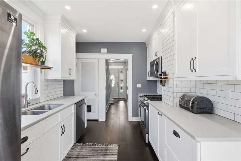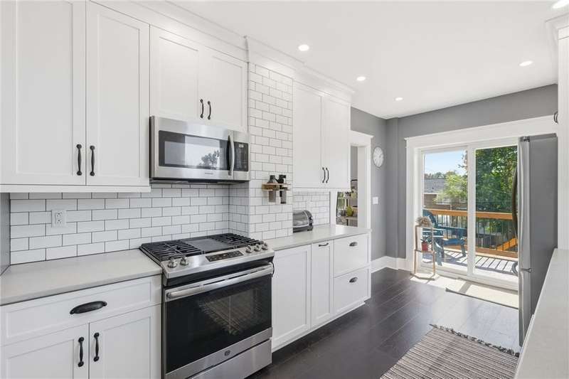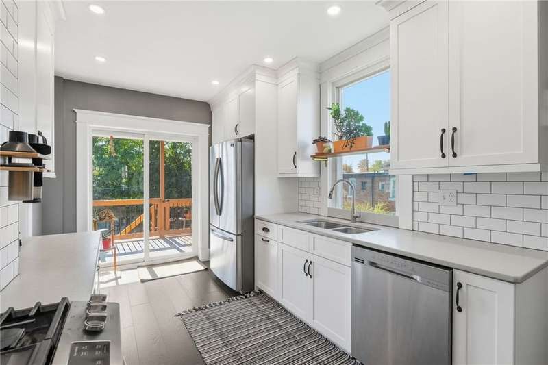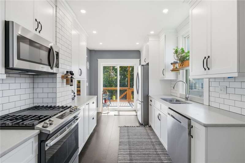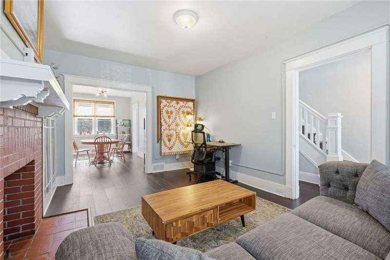 Welcome home to this beautiful 3 story red brick victorian home with a huge side lot and two parking spaces. This 4 bedroom home has old world charm with its fireplace and original built-ins but it meets the new world with its alluring updates. The kitchen has custom cabinetry, quartz countertops with leather like finishes and stainless steel appliances. Through the patio door in the kitchen step out on your charming deck and overlook you property to some great views. Beautiful espresso colored engineered wood floors throughout the first floor. The full bathroom on the 2nd floor has been completely remodeled. Through the smallest captive bedroom are stairs to a huge bedroom currently being used as a family/play room. This home is so much larger than it looks. Close to retail, cafes, pubs, restaurants, medical centers, universities and so much more! Move right in.