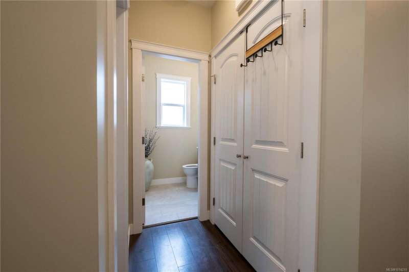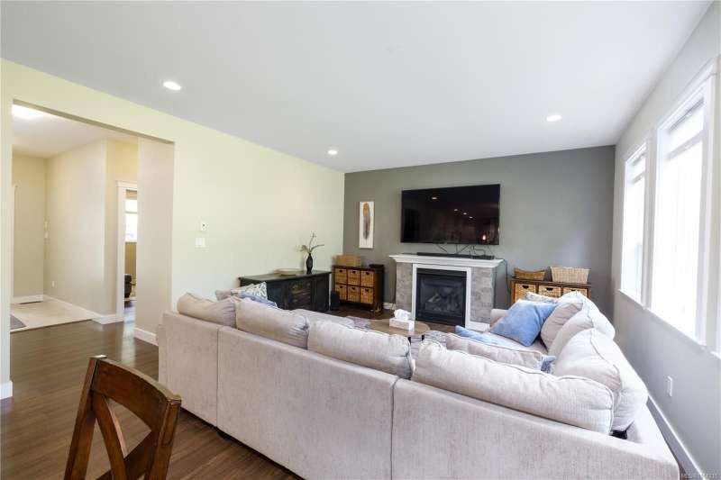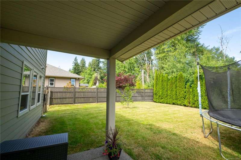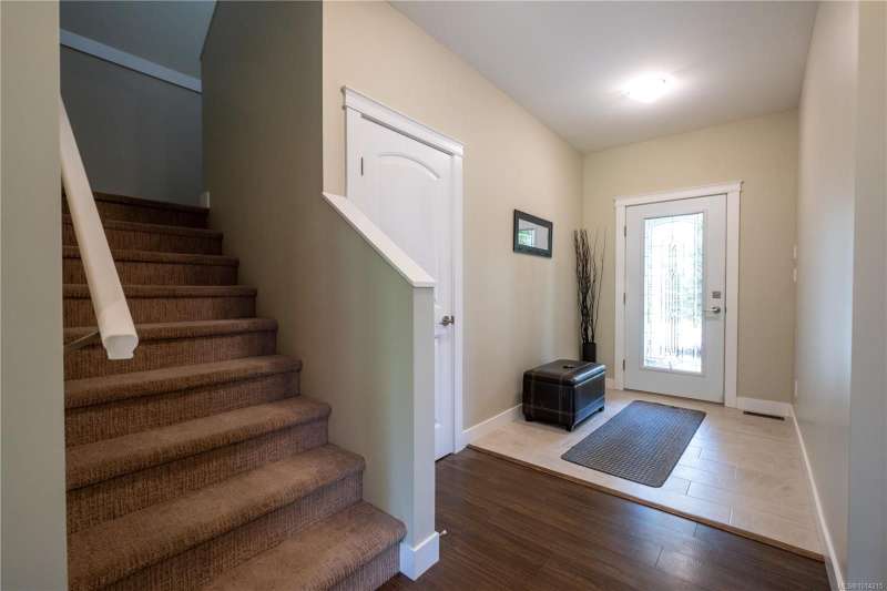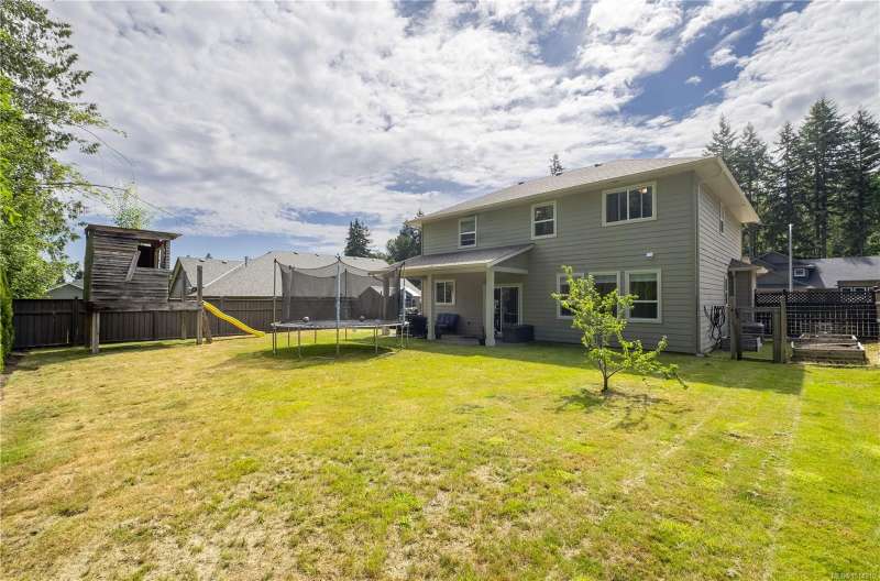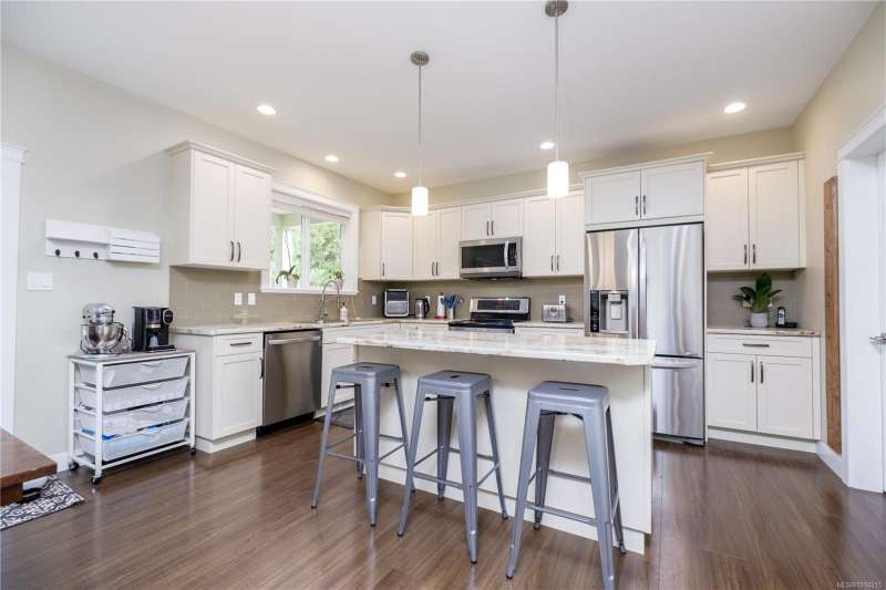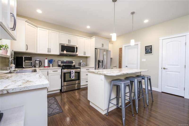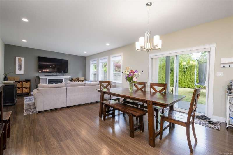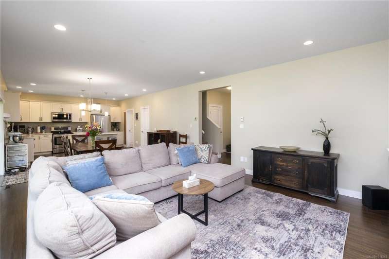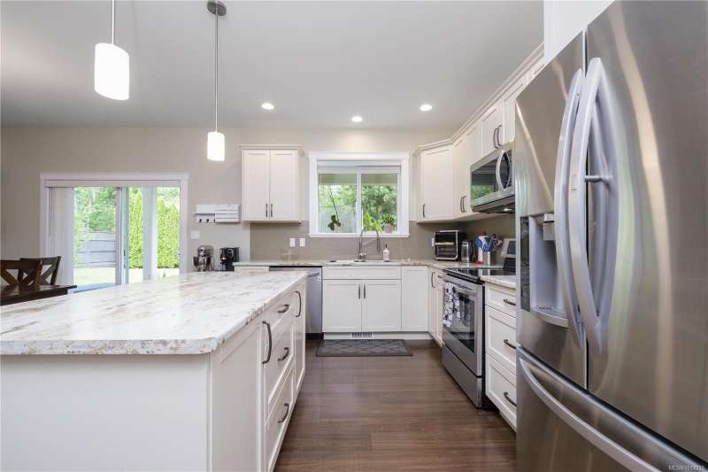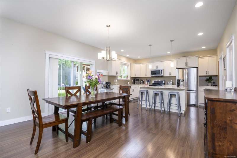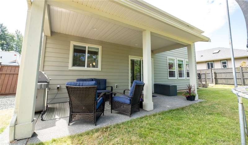 This thoughtfully designed residence offers nearly 2,200 sq.ft. of well-planned family living space, with 4 bedrooms and 3 bathrooms. The main floor boasts 9ft ceilings and an open-concept great room layout, featuring engineered hardwood and elegant travertine tile that seamlessly connect the island kitchen with the living and dining areas. A versatile den—perfect as a fourth bedroom—completes the main level. Upstairs, the spacious primary suite includes a large walk-in closet and a beautifully finished ensuite. Two additional bedrooms share access to a full bathroom, and there's a convenient computer nook ideal for kids' homework or a small office. High-quality finishings continue outside with durable Hardiplank siding and a large covered veranda—perfect for enjoying the afternoon sun. The backyard backs onto a scenic walking trail that leads to Piercy Creek, offering both privacy and a connection to nature. This home checks all the boxes for comfortable, functional family living.