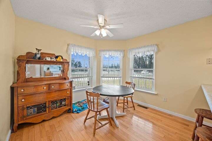 *Recent updates: Deck repairs and repainting completed by seller.* Experience the perfect balance of space, comfort, and convenience at 8820 Sparta Hwy. Situated on nearly two acres, this 3-bedroom, 2-bath home offers an abundance of storage and parking with an attached two-car garage featuring an electric car charging station, a detached two-car garage, a carport, and a storage shed. Whether you need extra space for vehicles, hobbies, or equipment, this property is designed to accommodate it all while being just minutes from the heart of Crossville. Inside, the home welcomes you with an open living space that creates a warm and inviting atmosphere. The kitchen features a cozy breakfast nook, perfect for enjoying your morning coffee, while a formal dining area provides an elegant space for meals and gatherings. The seamless layout makes entertaining easy, while large windows allow natural light to enhance the home's charm.