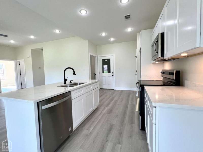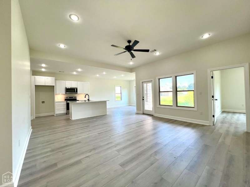 What are you waiting for? Come tour this Lovely, brick new construction home with 3 bedrooms and 2 bathrooms. Open plan with raised ceiling in the living room which overlooks the covered back patio and backyard. The kitchen is open to the living/dining and has a fantastic island and pantry. The Primary Suite contains a separate tiled shower and deep soaking tub. The two secondary bedrooms have entrances separate from one another, allowing for a little more privacy.