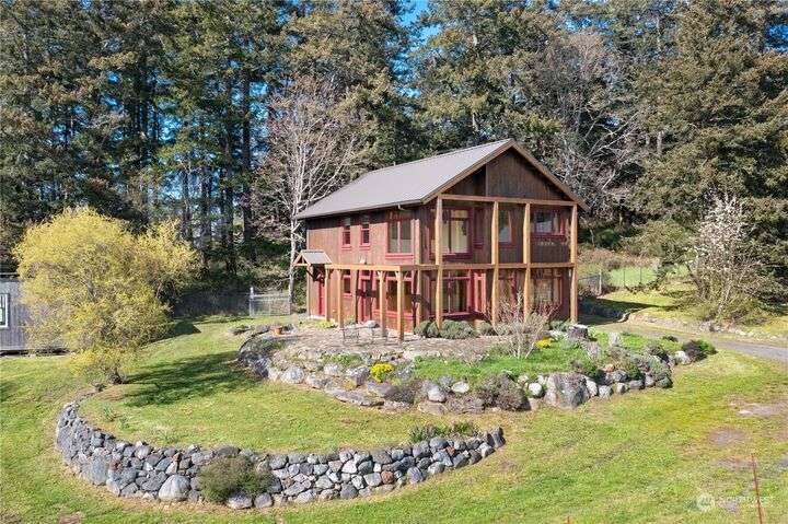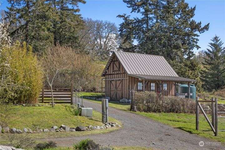 Stunningly beautiful & private 30 acre farm on the West side of San Juan Island. Large pastures, excellent soil, mostly fenced; perimeter, pastures & additional inner deer fencing for orchard & garden areas. Pond pump w/tunnel irrigation to barn, etc. extra warm micro climate in this private westside valley area provide excellent weather for growing crops. Berries, vineyard grapes, apples, plums, kiwis, figs, seed crops & more. This farm was previously home to Chickens & Sheep that were pastured here in previous years. Large hoop house has new skin & is optional with sale. Beautiful Northwest contemporary Timber frame home built by Ravenhill construction features open living concept, wood floors, vaulted ceilings and abundant passive solar.