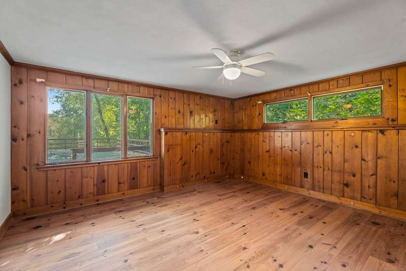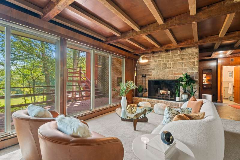 Step into a home that feels like time well kept. This mid-century modern retreat channels the best of the era-clean lines, walls of glass, and an easy indoor-outdoor rhythm-set within one of Branford's most coveted enclaves, Pine Orchard. Perfectly sited on 1.79 acres with direct access to Griffins Pond, the property lives like a private resort: sun-washed decks, an in-ground pool, and leafy perimeter plantings that wrap the grounds in calm. Inside, timeless design takes center stage. Nearly every room opens through sliders to the decks and yard, inviting breezes, morning light, and sunset glow. The flexible layout offers space for how you live now: 5 bedrooms, 3.5 baths, a welcoming family room, and a quiet study-ideal for work, play, or weekend guests. Host with ease; the flow is effortless from kitchen to decks to pool, while the pond becomes your backdrop for paddling, birdwatching, or simply unwinding. Here, privacy isn't an afterthought-it's the point. Tuck into a book by the pon