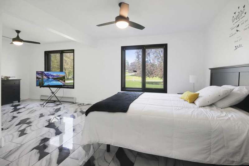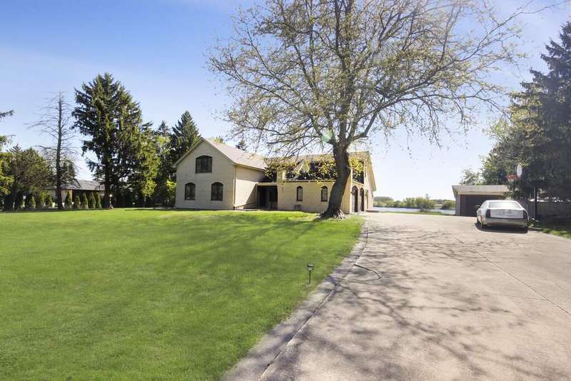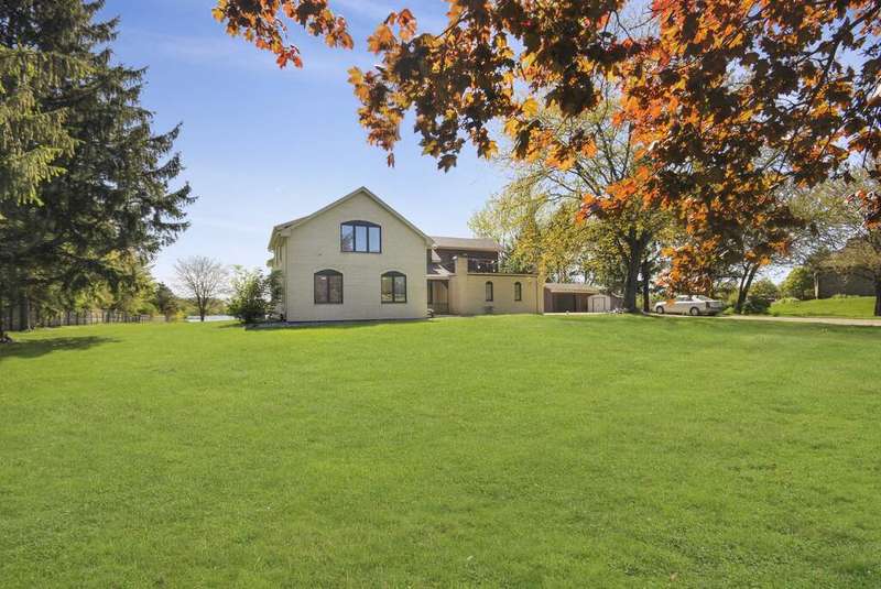 Welcome home to this amazing 5 acre estate sitting on a 20 acre lake. 6 bedrooms and 3 1/2 bathrooms in this 3800 square foot two-story. The main level has 4 bedrooms, two full bathrooms, two living spaces, kitchen (all appliances stay) and dining room. Patio doors from the living room take you outside to your incredible view of the lake. Upstairs you will find 2 more bedrooms, a full bathroom as well as a second kitchen and additional living spaces/office and a charming balcony. With separate entrances, the second level would make for a perfect related living or great spot for guests. Unfinished basement already has a 1/2 bathroom and is just waiting for your touches. Lake rights will make for all of the summer fun! Located less than a mile from the state line, this home is close to everything!