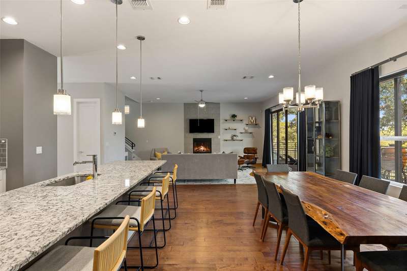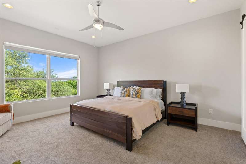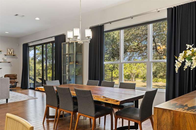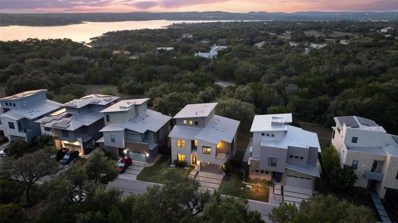 Welcome to your Hill Country retreat in the gated Canopy at Hudson Bend community on Lake Travis. This 2.5-story home is designed with modern families in mind, offering generous living spaces, abundant natural light, and seamless indoor-outdoor living. The open main level flows effortlessly between the kitchen, dining, and living areas, creating an inviting backdrop for daily life and entertaining. Expansive windows showcase breathtaking views of Lake Travis and the surrounding Hill Country, while soaring ceilings and recessed lighting enhance the airy, light-filled feel throughout.