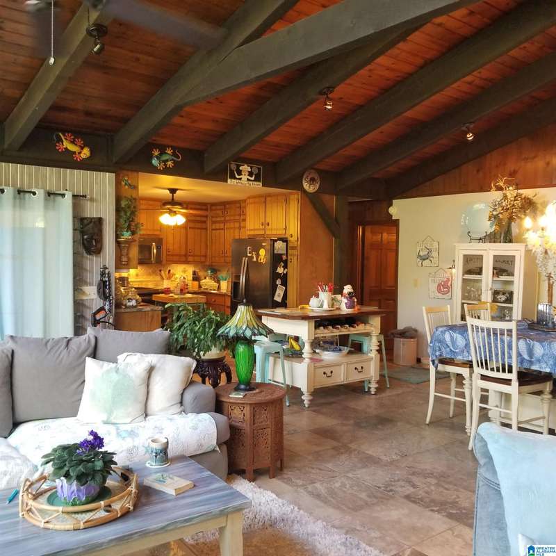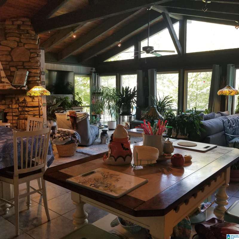 Great lake house on Logan Martin Lake. This is such a cool main level living home ideal for the lake lover. Three bedrooms and three bathroom. Huge Living Rooms open to kitchen and dining area with beautiful windows looking over lake. Several windows replace in home. Fantastic yard that looks like botanical gardens. High ceilings in living room with beautiful wood beams. Open and covered decks for entertaining Also, fabulous space for grilling along with place for jacuzzi that does not work. The heat/air unit was replaced less than a year ago. Boat launch ideal for your boating needs. Big separate barn style garage with upstairs for storage which needs some work. Separate power to garage. Green house for your plant needs. Concrete seawall which has steps for easy walk into the lake. Fenced yard ideal for children and pets. Close to restaurants and marinas. Separate den which could be used for extra bedroom or office. So many unique features in this home to treasure.