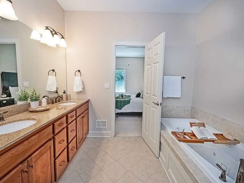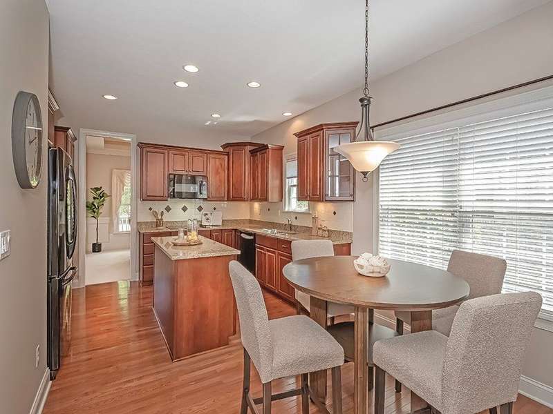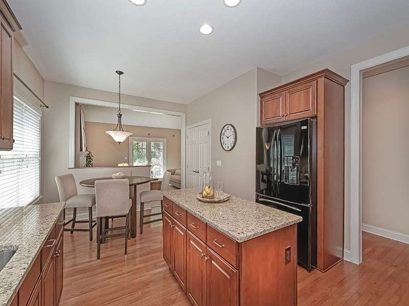 As you step inside, you're welcomed by gleaming hardwood floors and a spacious, inviting entryway. To your left, you'll find a formal dining room perfect for hosting family dinners or holiday gatherings. The living room features a soaring cathedral ceiling, a cozy gas fireplace, and easy access to a private outdoor patio, complete with a gas grill with gas hookup ready for relaxing outdoors. Also included are automatic retractable awnings. The eat-in kitchen is both functional and stylish, offering granite countertops, and under-cabinet lighting. The main-level owner's suite is a true retreat, featuring a luxurious bathroom with a soaking tub, separate tiled shower, double sinks, and a large walk-in closet. Upstairs, you'll find a versatile loft area, two generously sized bedrooms, and a bonus room great for a home office or guest space. The finished basement has ample space with a wet bar, room for a game room and pool table. Thoughtfully designed home with room for everyone.
