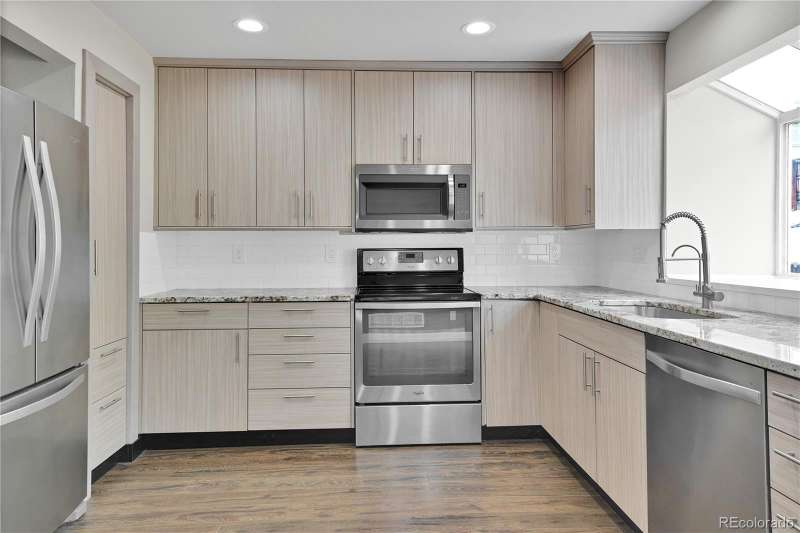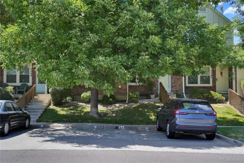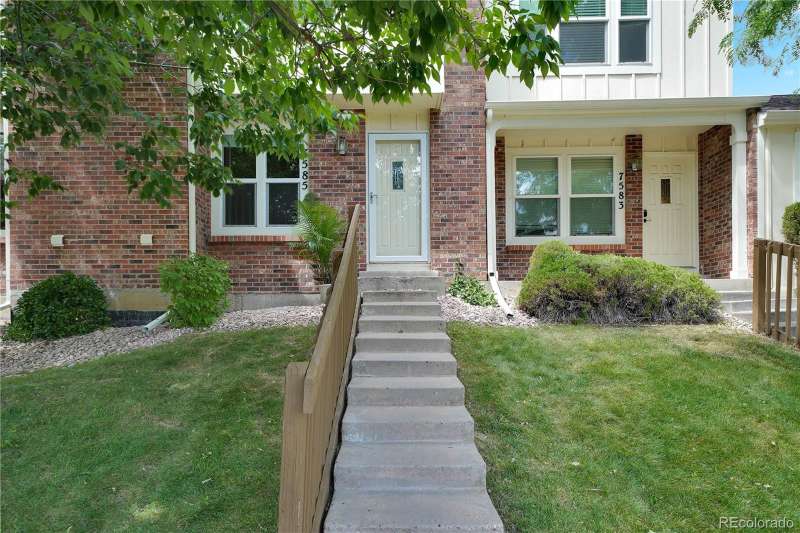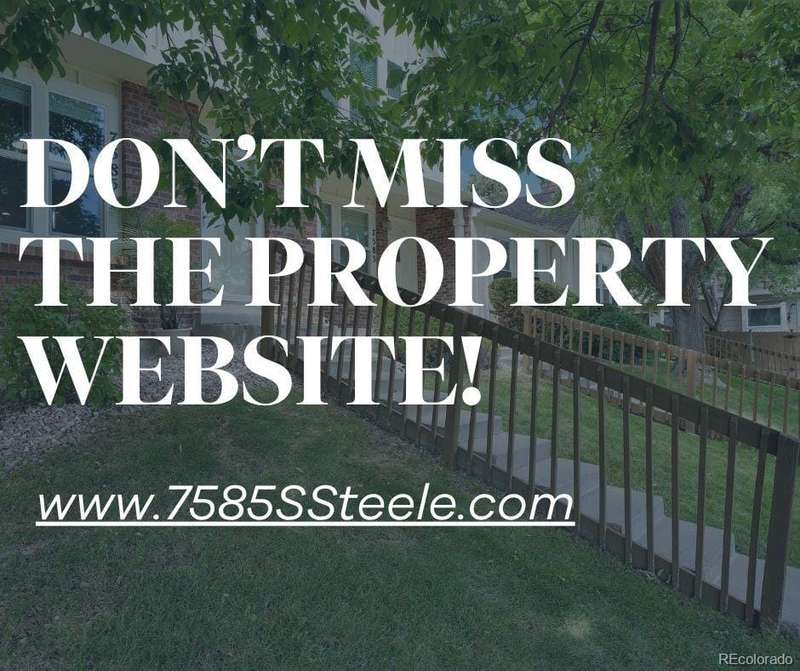 www.7585SSteele.com - Welcome to this beautifully updated Monterey Condo townhome, thoughtfully renovated from top to bottom in 2017 w/new systems - Recent updates include new roof, new windows/sliding glass door, new carpeting and new water heater. The light-filled living room overlooks a peaceful open space and features a cozy wood fireplace and an adjacent main floor powder room. The open-concept kitchen includes an easting space custom soft-close cabinetry with pantry, granite countertops, classic subway tile backsplash and stainless steel appliances including a French door refrigerator. The kitchen opens to a private back patio which backs to a beautiful greenbelt. Upstairs, you will find dual bedroom suites with vaulted ceilings and custom closet doors. The primary bedroom offers a bath with spa-inspired updates, including river stone shower flooring and modern fixtures. The west bedroom features a full bath with new tile, updated fixtures, and a luxurious soaking tub. A finished lower level adds flexible living space, perfect for a family room, office space or work-out area along with separate storage. Parking is a dream with with both a a reserved space just outside the front door along with ample guest parking and a covered carport. Ideally located near Arapahoe Park, The Streets at SouthGlenn, South Suburban Recreation Center, golf courses, and top-rated schools. This property is a great investment option and has had great rental history since '17.