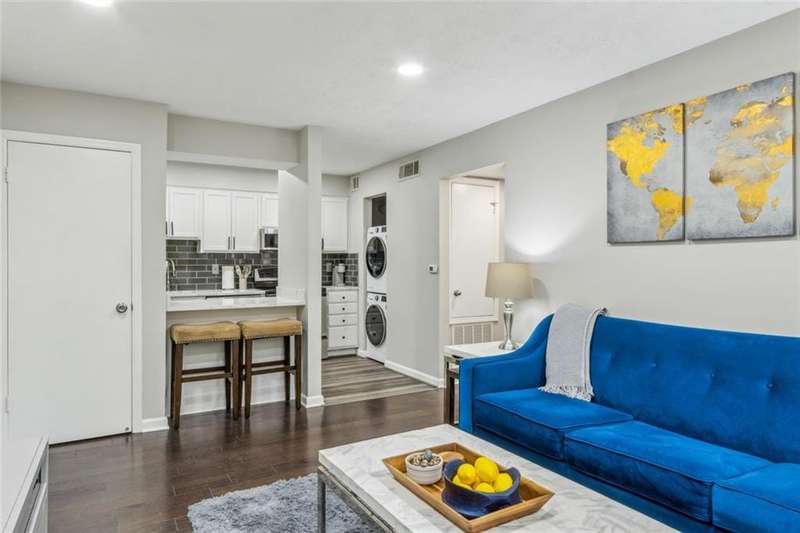 Sparkling renovation puts this one leaps and bounds beyond the others. Newer counters, cabinets, floors, appliances. Such a bargain for what you get. Cute, quiet and private and just done. Move in. Nice large private fenced deck, that worth the price alone. Get in to view before its gone!