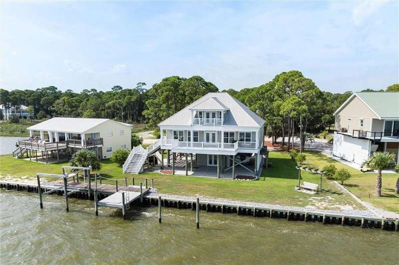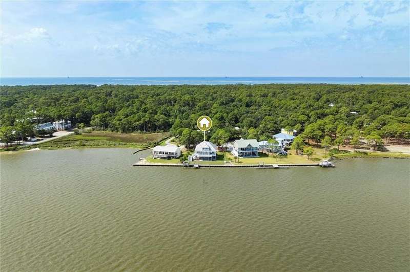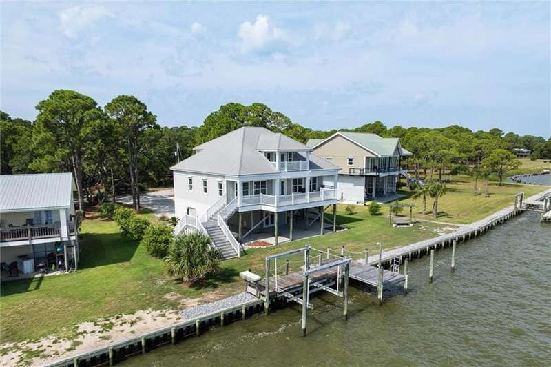 Welcome to your own slice of paradise on the pristine waters of Little Dauphin Island, where luxury meets adventure in perfect harmony. This extraordinary six bedroom, four bathroom waterfront retreat offers an unparalleled escape from the ordinary, designed for those who appreciate the finer things in life while maintaining a connection to nature's most spectacular offerings.Step inside this thoughtfully designed home and discover a layout that maximizes both comfort and functionality. The main level welcomes you with three spacious bedrooms, while the upper floor houses an additional three bedrooms, ensuring ample space for family, friends, and guests. Two primary bedrooms provide ultimate privacy and relaxation, each designed as a personal sanctuary where you can unwind after days spent on the water.The heart of this home lies in its gourmet kitchen, featuring a generous island wonderful for meal preparation and casual dining. Beautiful granite countertops provide both durability and elegance, while the walk-in pantry ensures you'll never run short on storage space. The adjacent laundry room, conveniently located in the hallway, keeps household necessities organized and accessible.Outdoor enthusiasts will find themselves in absolute heaven with this property's impressive array of water-focused amenities. The private boat lift accommodates your vessel with ease, while additional boat storage beneath the house protects your investment from the elements. For those with multiple watercraft, an additional boat slip ensures everyone's toys have a proper home. The fishing opportunities are simply endless, with a dedicated fish cleaning station making your catch-of-the-day preparation a breeze.The dock stretches along 140 feet of pristine waterfront, complete with lighting for those magical evening moments when the sun paints the sky in brilliant hues. Speaking of sunsets, you'll quickly discover why this area has earned its reputation as a sunset destination each evening delivers a natural masterpiece that never grows old.Entertaining reaches new heights with the fully equipped outdoor kitchen, excellent for hosting gatherings while enjoying the gentle gulf breeze and water views. The thoughtfully landscaped grounds provide a lush backdrop for outdoor activities, while the metal roof ensures durability against coastal weather conditions.The recently installed bulkhead adds both functionality and peace of mind, protecting your waterfront investment for years to come. Multiple balconies offer various vantage points for taking in the serene water views, whether you prefer morning coffee with the sunrise or evening cocktails as day transitions to night.Location plays a crucial role in this property's appeal. Positioned on Little Dauphin Island, you'll enjoy a secluded setting that feels worlds away from the hustle and bustle yet remains accessible for day trips and supply runs. The deep canal provides excellent protection for boats while offering direct access to some of the Gulf Coast's most pristine fishing grounds.This is your gateway to experiencing the very best of coastal Alabama living, where every sunrise brings new adventures and every sunset provides the perfect ending to another day in paradise.. Buyer responsible for verifying all measurements and relevant details.