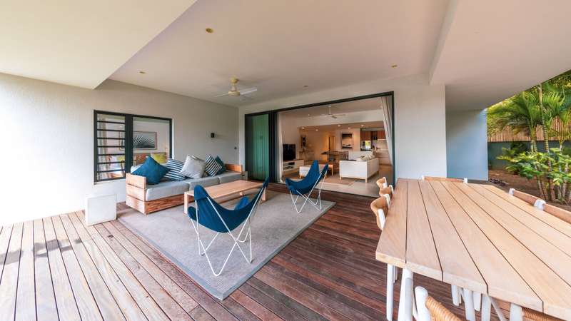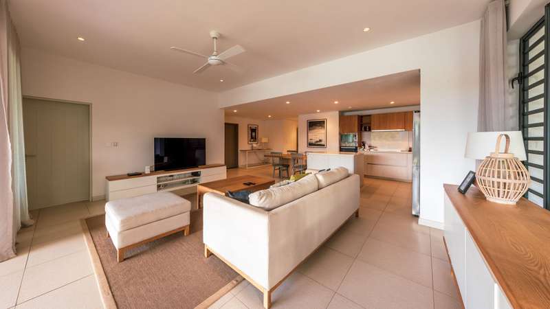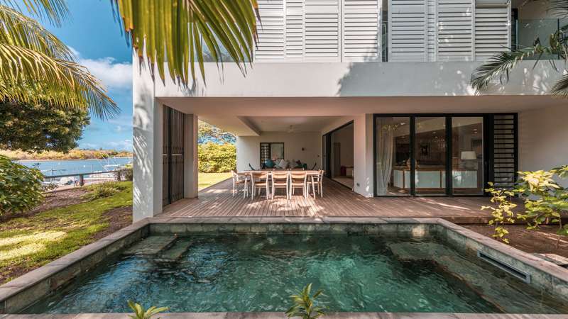Located within the exclusive WaterClub development on the west coast of Mauritius, this 3-bedroom apartment offers the perfect balance of modern tropical design, open-plan living, and direct lagoon access. Designed for discerning buyers seeking a refined lifestyle in a premium waterfront setting, the residence seamlessly blends indoor comfort with outdoor serenity. Bright, Open Living Spaces with Seamless Indoor-Outdoor Flow The apartment features a generous open-plan layout, comprising a stylish living area, dining space, and a fully fitted Italian kitchen. Floor-to-ceiling glass doors open onto a large private terrace or landscaped garden (depending on the unit), allowing abundant natural light and creating a true sense of flow between interior and exterior living. Three Well-Appointed Bedrooms The master suite offers a tranquil retreat with a private bathroom, built-in wardrobes, and direct access to outdoor space. Two additional bedrooms provide ample room for family or guests and share a modern, well-designed bathroom. The interiors are crafted with premium materials, clean lines, and a soothing palette, creating a warm and elegant ambiance throughout. Luxury Amenities and Resort-Style Services As a resident of The WaterClub, you benefit from: A 16-meter swimming pool with pool house, Landscaped gardens, outdoor lounge, fire pit, and barbecue area, A private pontoon (subject to permit) offering direct access to the marina and river, An exclusive 2-year Boat Club membership, including access to a Beneteau 7.7 Spacedeck boat, kayaks, and stand-up paddleboards, Optional custom interior design packages by Namakoa Design Studio. A Rare Waterfront Lifestyle in a Prime Location This 3-bedroom apartment at The WaterClub offers an exceptional opportunity to own a luxurious, low-maintenance residence in one of Mauritius’ most sought-after coastal locations. Whether for permanent living, a holiday retreat, or an upscale rental investment, it promises a lifestyle defined by comfort, freedom, and elegance on the water.