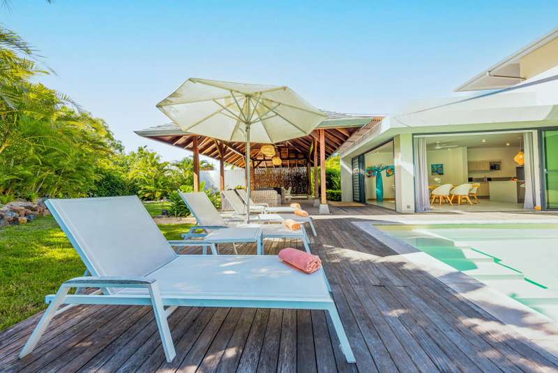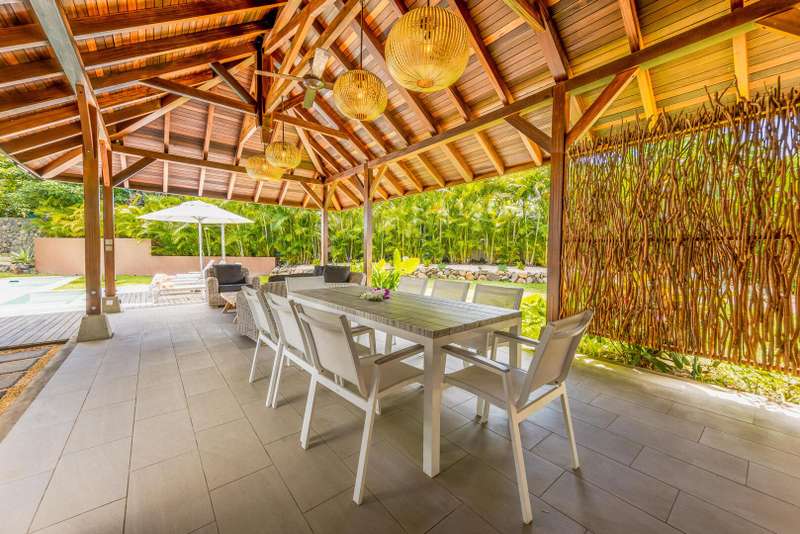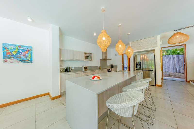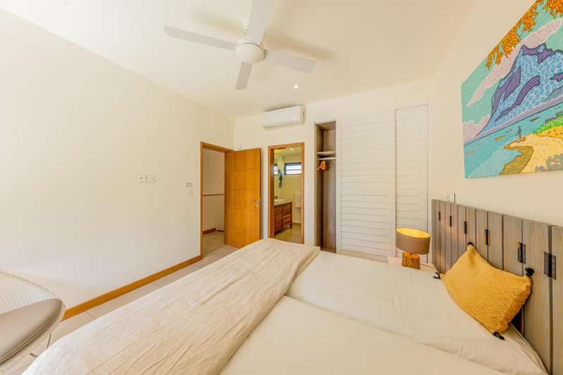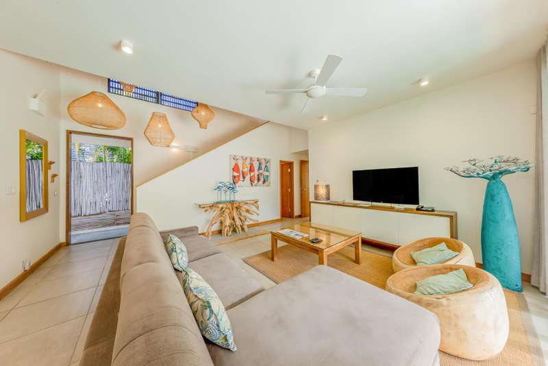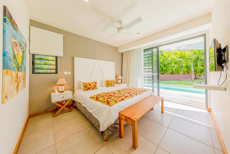 Located within the prestigious Marguery Villas resort in Rivière Noire, Villa 32 offers a perfect blend of elegance, comfort, and island authenticity. Just 800 meters from the turquoise lagoon and facing the iconic La Tourelle mountain, this villa enjoys a privileged setting within the lush, 250-hectare private residential estate of La Plantation Marguery. This deluxe 3-bedroom villa spans two levels and has been designed to provide a welcoming and contemporary living experience. On the ground floor, spacious and light-filled living areas open seamlessly onto a beautifully landscaped tropical garden. High-end materials and quality fittings enhance the understated sophistication of the interiors, while wide openings create a natural indoor-outdoor flow. The master suite, also located on the ground floor, opens directly onto the swimming pool and features a private en-suite bathroom, a walk-in wardrobe, and an outdoor shower for a truly relaxing tropical ambiance. Upstairs, two additional bedrooms each come with their own private bathroom, offering both comfort and privacy for residents and guests alike. The outdoor space has been thoughtfully designed to take full advantage of the island’s warm climate. A covered veranda with ceiling fan, private swimming pool, and lush garden make it the ideal setting for relaxation or entertaining. As a resident, you benefit from the resort’s top-tier amenities: a clubhouse with concierge service, gym, kids’ club, lap pool, lounge bar, and chic food corner. A private in-villa catering service is also available, offering a refined and seasonal menu prepared with locally sourced ingredients. The villa is offered fully furnished and decorated, with a sale price of €950,000 (excluding notary and registration fees). Owners have the option to join the Marguery Villas Rental Pool, which ensures attractive rental yields (between 3.5% and 5%), daily maintenance, professional hotel-standard management, and the flexibility to enjoy personal stays as desired. Ideally located just 50 meters from Ruisseau Créole, a charming open-air shopping village offering boutiques, restaurants, cafés, a pharmacy, and a weekly organic market, Villa 32 presents a rare opportunity to invest in a lifestyle that combines tropical luxury, convenience, and income potential.