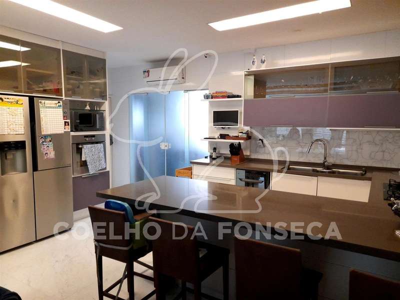 - Cozinha em conceito aberto com bancadas em quartzo.