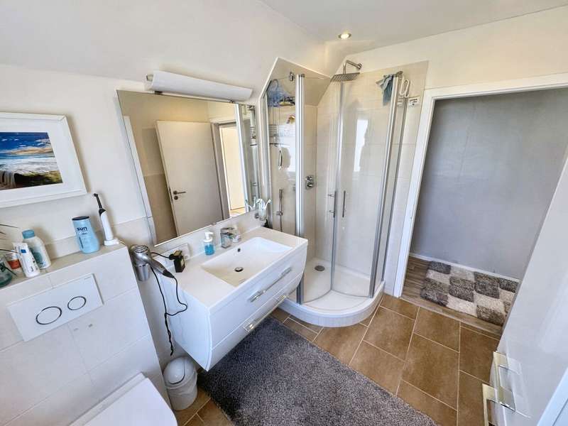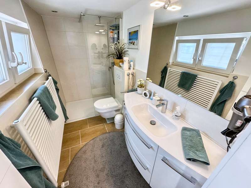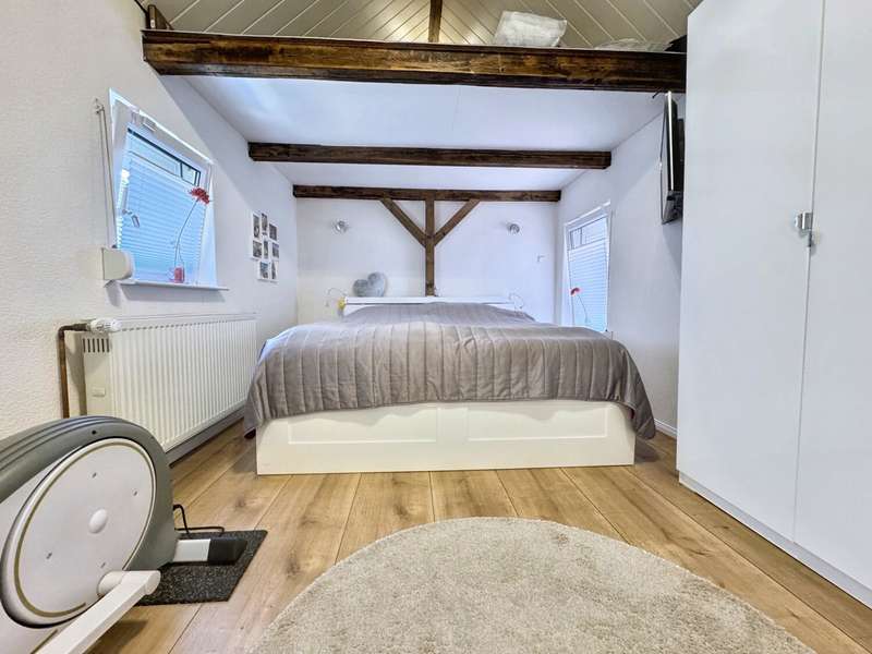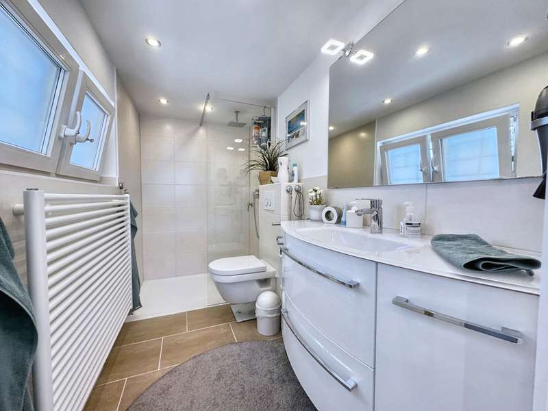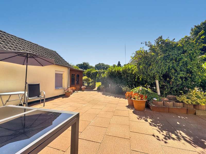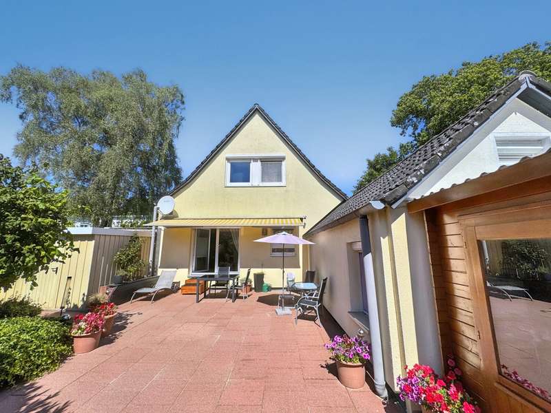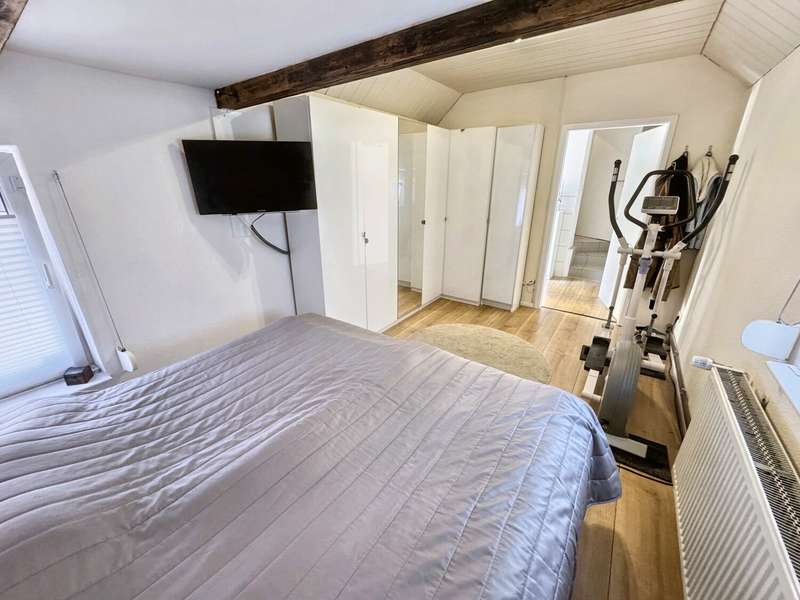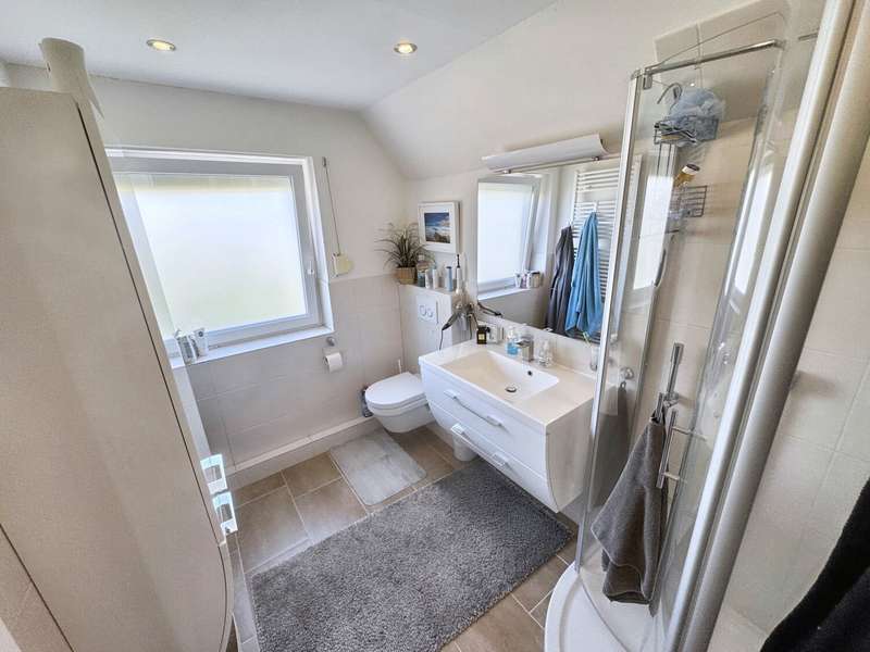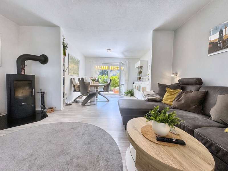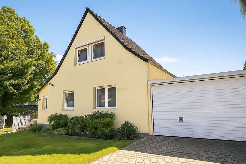 We ask for your understanding that on-site viewings are only possible from September 8th. However, to give you a first impression in advance, you will receive a link to the virtual viewing after downloading the exposé. If the property meets your expectations, we will be happy to receive your message or call you from Monday, September 1st. Welcome to your new home! This charming detached house offers you everything you could wish for to live comfortably on approx. 110 m² of living space and a spacious plot of around 500 m². The property is in a ready-to-move-in condition and has been lovingly maintained and modernized in recent years. On the first floor, you are first greeted by a practical vestibule with an adjoining stylishly modernized bathroom, equipped with underfloor heating and a towel radiator. From here, the path continues into the hallway, which gives you access to all rooms. The spacious kitchen offers plenty of room for a cozy dining area - the perfect place to spend time with family and friends. Directly adjacent is the annex with a further bedroom and its own access to the terrace - ideal as a guest room or retreat. The heart of the house is the bright and inviting living room, which provides cozy warmth with its fireplace. From here, you have direct access to the sunny south-facing terrace, which invites you to relax and enjoy. Two further bedrooms and a modernized shower room await you on the upper floor. The house has a partial basement, which offers both storage space and a boiler room with an integrated laundry room - practical and functional at the same time. Thanks to the heating, pleasant temperatures are also ensured here. The outdoor area will delight you: a spacious terrace, a well-tended lawn and a garden shed create plenty of space for relaxation, gardening and socializing. There is also a storage room behind the garage. You can park your car conveniently in the garage; there are plenty of parking spaces for other vehicles in the street. This house combines comfort, cosiness and solid modernization - an ideal home for couples or families who want to move in immediately and feel at home.