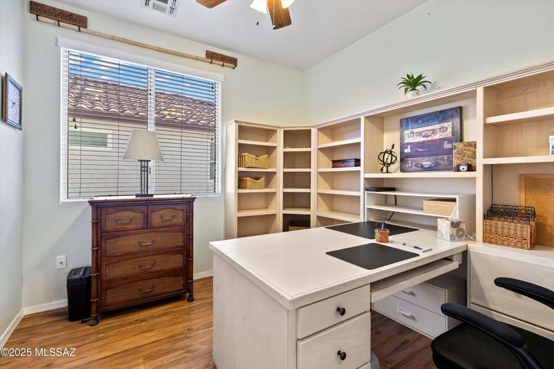 Welcome to this warm and inviting Sunrise floor plan home, offering 1,114 sq ft with two bedrooms and two baths. A private entry patio greets you and leads you into an open living area that flows seamlessly to a breakfast nook and efficient kitchen which overlooks the peaceful back patio. The primary suite is nestled at the rear of the home and features a walk-in closet and a private step in shower. The guest bedroom, currently used as an office is located near a guest bath and is just off the two car garage. Outside, the covered rear patio and garden area creates a perfect spot for relaxing or enjoying a quiet moment. Home was re-roofed in 2024 and HVAC 2019. Come by today and discover the charm for yourself.