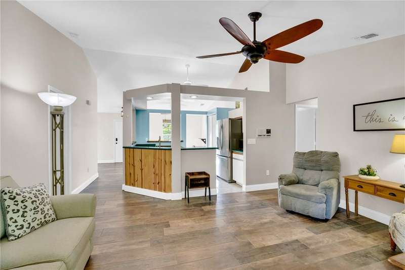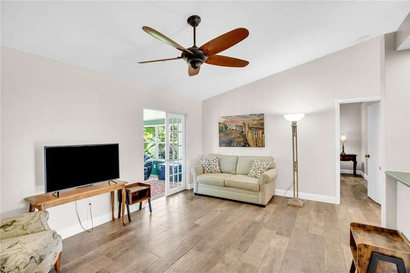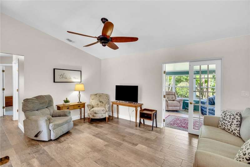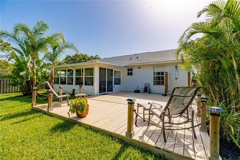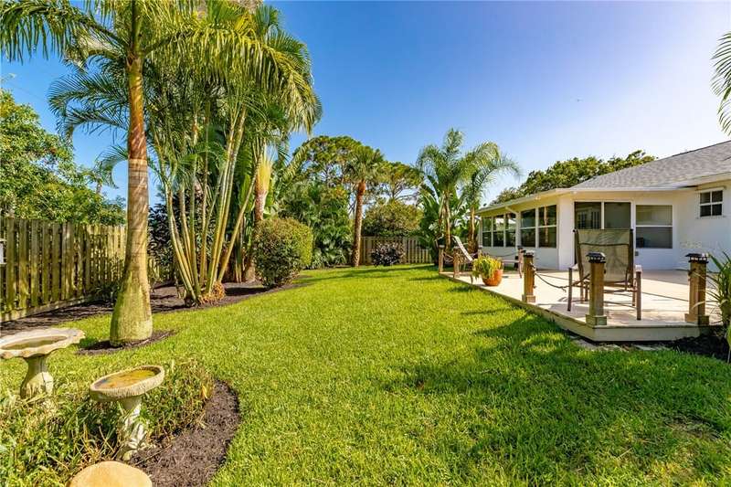 Charming 3 bed, 2 bath home in Sebastian Highlands! Formal dining room, living room, office/flex room, and a large enclosed Florida room with AC. Tile throughout living areas and primary suite. A lushly landscaped, fenced-in backyard with extended patio and deck, outdoor shower, and irrigation system. Newer, oversized paver driveway, full set of storm shutters, 2018 roof, 2022 AC, 2018 water heater, and whole house re-piped in 2023. Offered fully furnished and move-in ready. Perfect for seasonal living or a vacation rental! rmszappr&sub2err