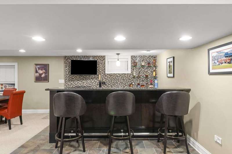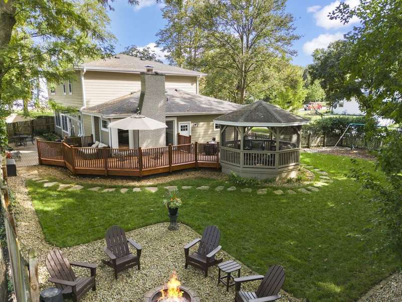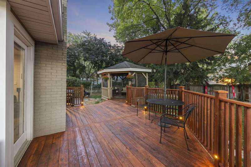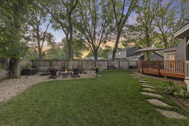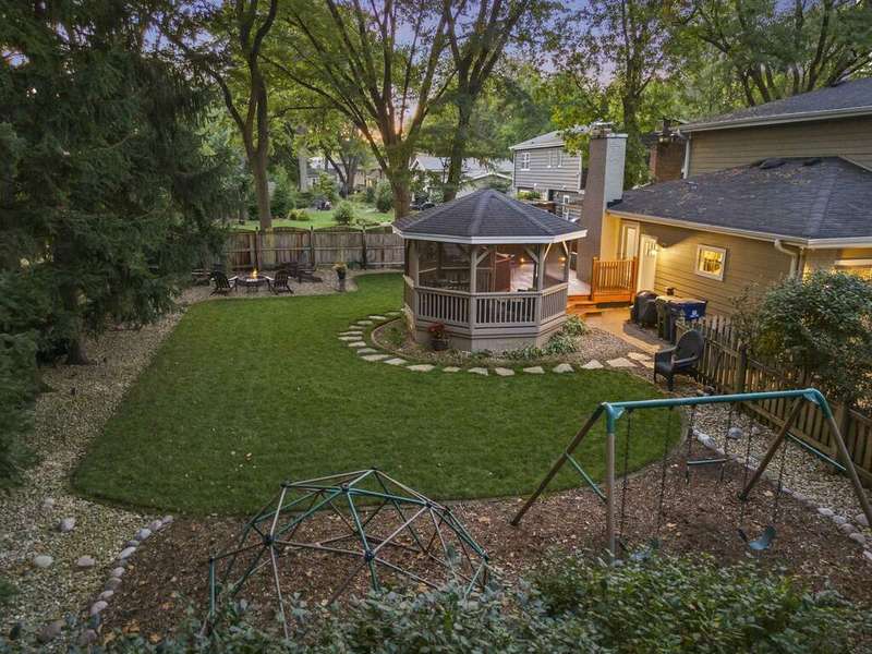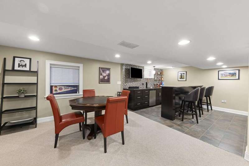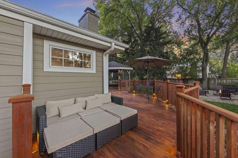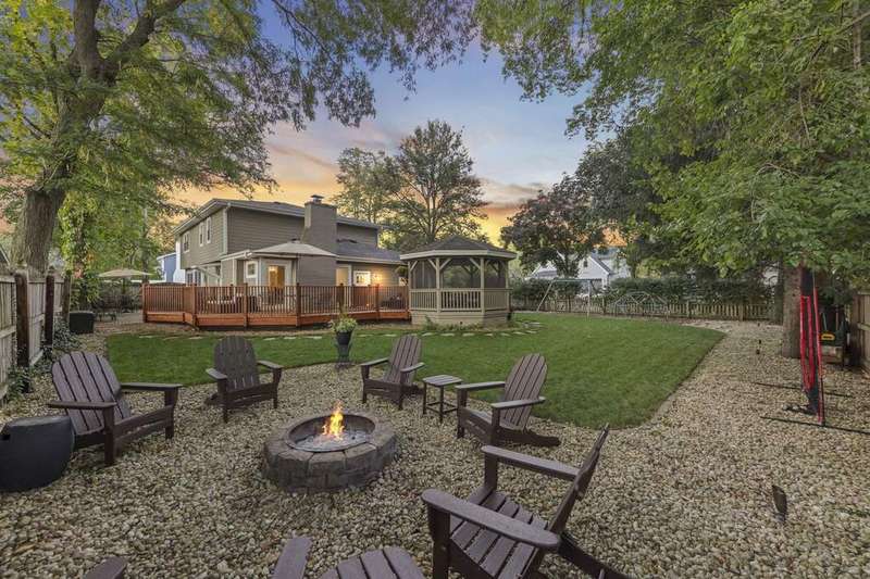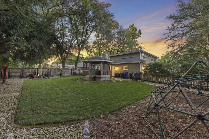 Reimagined interiors and timeless curb appeal combine to deliver a complete package, just minutes from Downtown Naperville. Inside, a first-floor renovation by award-winning Lauren Collander Interiors and SG Home Builders showcases exceptional craftsmanship. The chef's kitchen is the true centerpiece with quartz counters, an expansive 8-foot island, Styleline custom cabinetry, Kohler sink, high-end KitchenAid appliances, built-in bar, and space for an eating area. The open concept flows seamlessly into the family room, framed by a Heatilator fireplace and windows overlooking the backyard. An expanded front entry welcomes guests, while the spacious living and dining room with bay window, updated powder room, and mudroom complete the inviting main level. Upstairs, the stunning primary suite features a spa-like en suite bath remodeled in 2024 with a dual vanity, heated flooring, stylish tile, walk-in shower, and a large linen closet offering potential for a second-floor laundry. Three additional bedrooms offer generous space and closets, served by a hall bathroom. Additional linen storage and hardwood flooring under the carpet enhance the upper level. The finished basement is designed for entertaining, featuring a bar and full bathroom. Multiple gathering spaces await in the fenced backyard, including a patio, deck, peaceful gazebo, and a fire pit area. The exterior features Hardie Board siding, Marvin & Pella windows, a freshly sanded paver driveway, irrigation system, and picturesque landscaping. A heated garage with convenient yard access and newer HVAC (2020) add comfort and functionality. This is a rare opportunity to own an updated home with proximity to town, train, parks, shopping, and more. Located within highly acclaimed District 203 School boundaries - Prairie, Washington, and Naperville North HS. Don't miss this one!