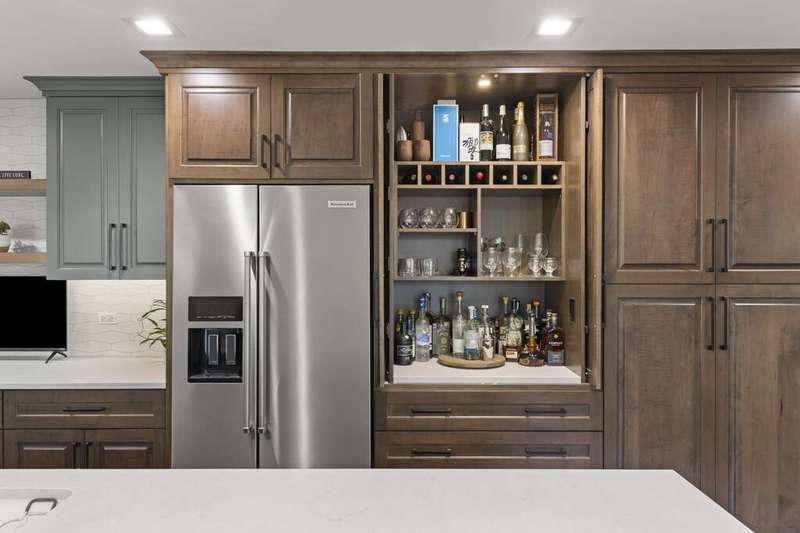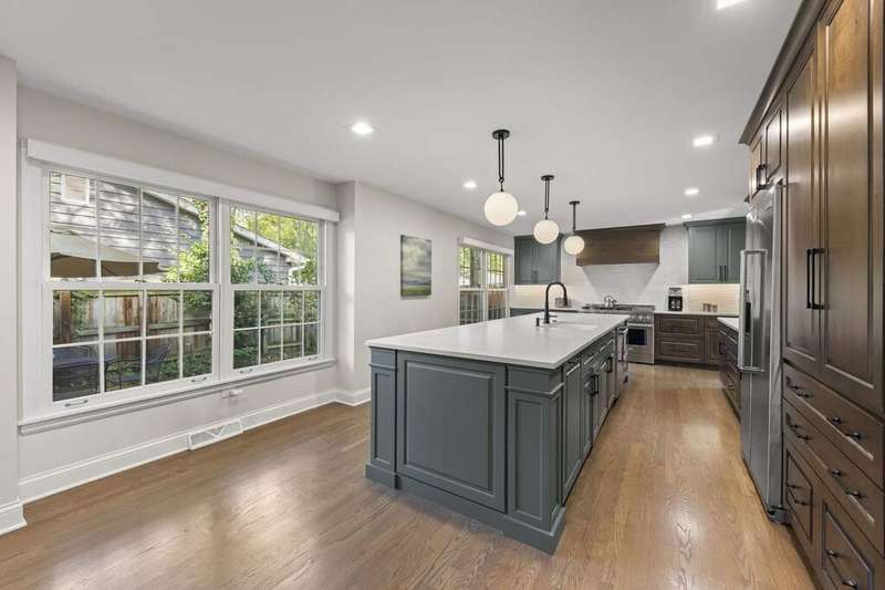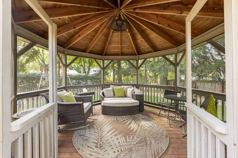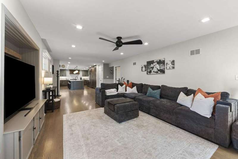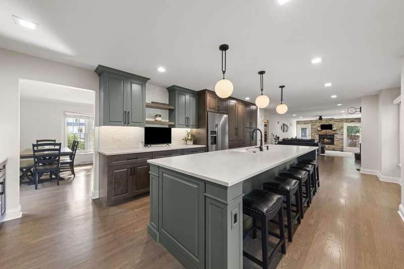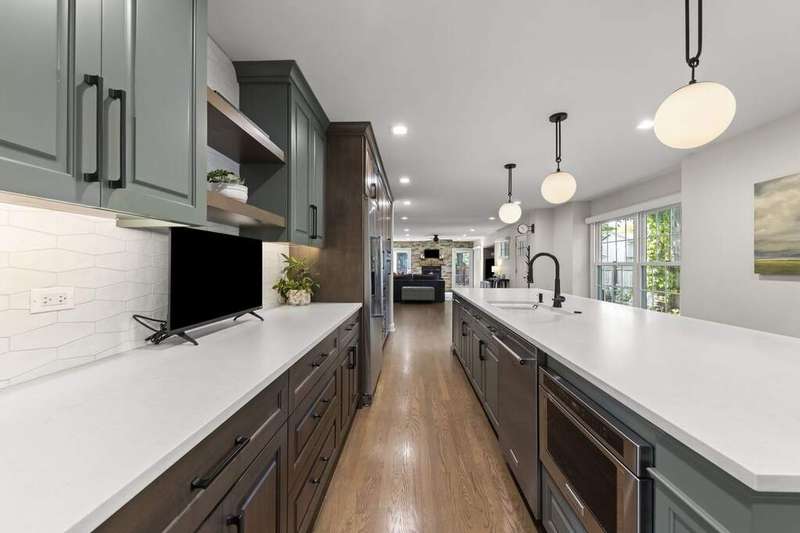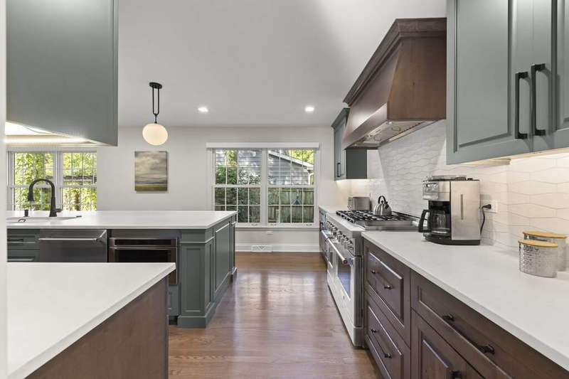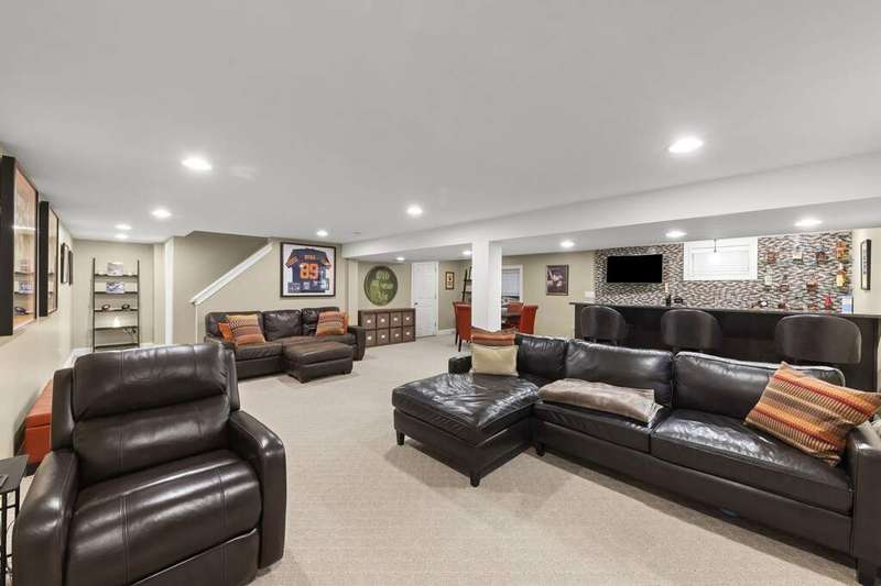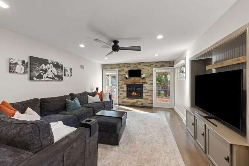 Reimagined interiors and timeless curb appeal combine to deliver a complete package, just minutes from Downtown Naperville. Inside, a first-floor renovation by award-winning Lauren Collander Interiors and SG Home Builders showcases exceptional craftsmanship. The chef's kitchen is the true centerpiece with quartz counters, an expansive 8-foot island, Styleline custom cabinetry, Kohler sink, high-end KitchenAid appliances, built-in bar, and space for an eating area. The open concept flows seamlessly into the family room, framed by a Heatilator fireplace and windows overlooking the backyard. An expanded front entry welcomes guests, while the spacious living and dining room with bay window, updated powder room, and mudroom complete the inviting main level. Upstairs, the stunning primary suite features a spa-like en suite bath remodeled in 2024 with a dual vanity, heated flooring, stylish tile, walk-in shower, and a large linen closet offering potential for a second-floor laundry. Three additional bedrooms offer generous space and closets, served by a hall bathroom. Additional linen storage and hardwood flooring under the carpet enhance the upper level. The finished basement is designed for entertaining, featuring a bar and full bathroom. Multiple gathering spaces await in the fenced backyard, including a patio, deck, peaceful gazebo, and a fire pit area. The exterior features Hardie Board siding, Marvin & Pella windows, a freshly sanded paver driveway, irrigation system, and picturesque landscaping. A heated garage with convenient yard access and newer HVAC (2020) add comfort and functionality. This is a rare opportunity to own an updated home with proximity to town, train, parks, shopping, and more. Located within highly acclaimed District 203 School boundaries - Prairie, Washington, and Naperville North HS. Don't miss this one!