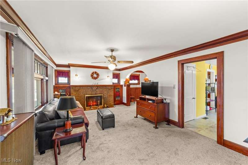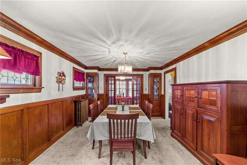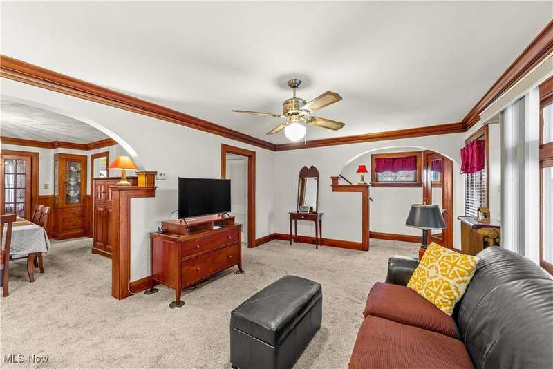 Located in Cleveland's West Boulevard neighborhood, this beautifully maintained Colonial features over 1,500 sq ft of living space with three bedrooms and two full baths. Enter into the spacious living room, which features amazing original woodwork and built-ins, including leaded glass cabinets and unique millwork lighting. Stunning woodwork and more built-ins continue throughout the large dining room, which is the perfect space for hosting dinner parties and holiday gatherings. Off the dining room, a set of French doors open to a bright and cozy sunroom. The spacious eat-in kitchen includes all the appliances, and features plenty of storage and counter space. Upstairs, the primary bedroom is spacious and includes a large closet. Two additional bedrooms and a full bath complete the second level. The lower level features a large rec room area, laundry area, and full bath. Outside, the incredible front porch and rear patio provide plenty of outdoor entertaining space...and don't miss the oversized 2-car detached garage! This property sits a short distance from local parks, shopping, and highway access. Don't miss this opportunity to own this lovely home in an ideal west Cleveland location!