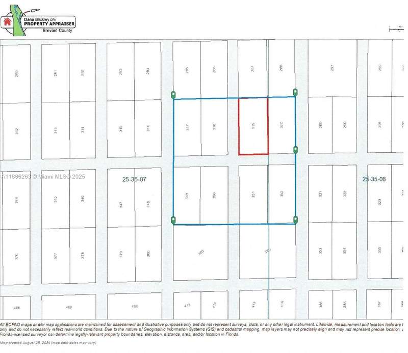 This land is zoned GU with a property use of 0010 - VACANT RESIDENTIAL LAND (SINGLE FAMILY, PLATTED). There is no road access to the land. There are 8 parcels being sold all together. Brevard County Account #'s: 2500349, 2500350, 2500351, 2500352, 2500365, 2500366, 2500367, 2500368