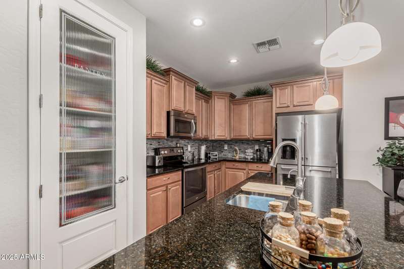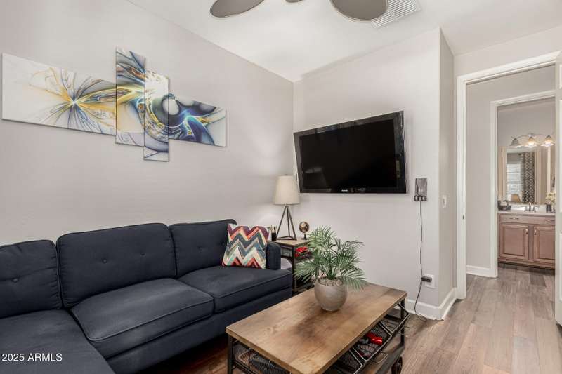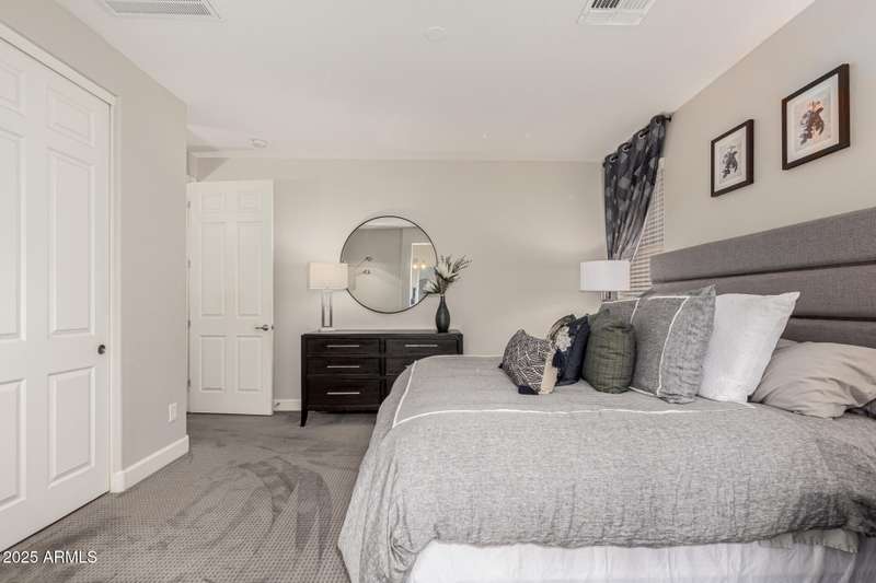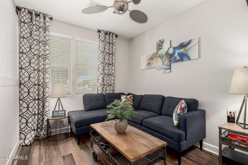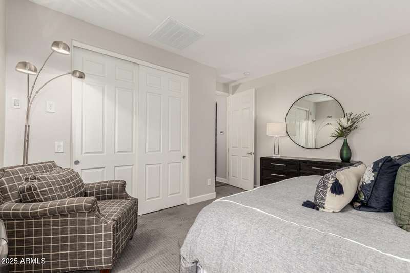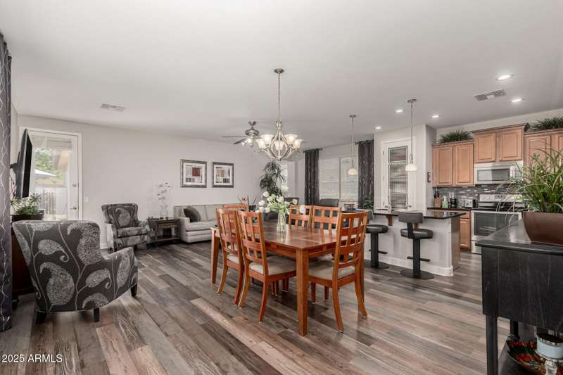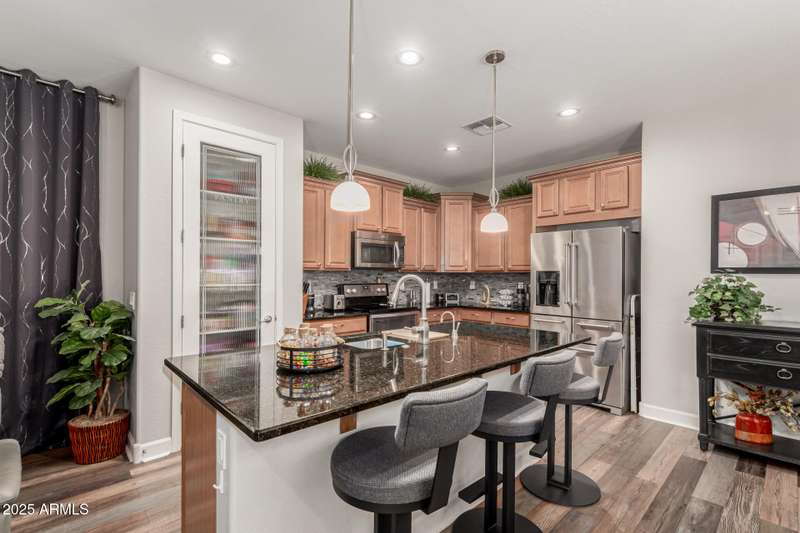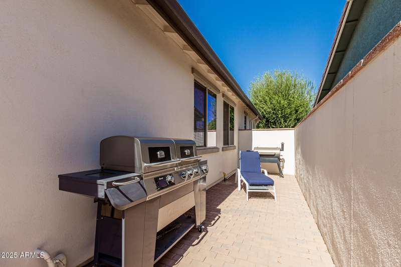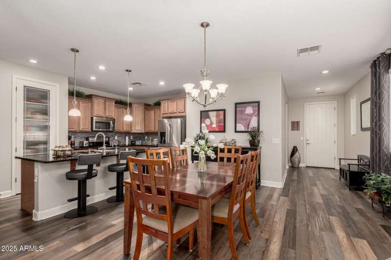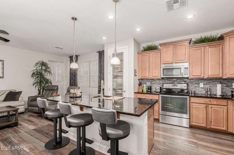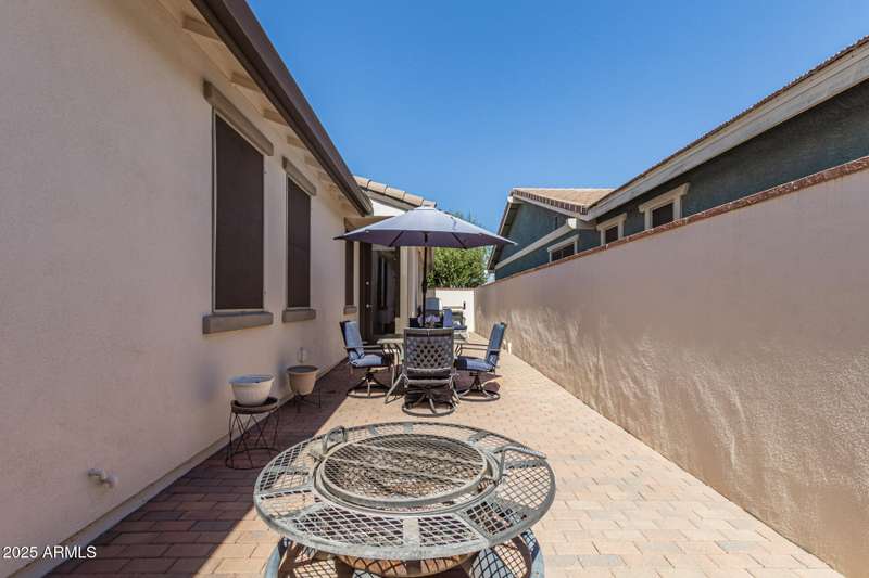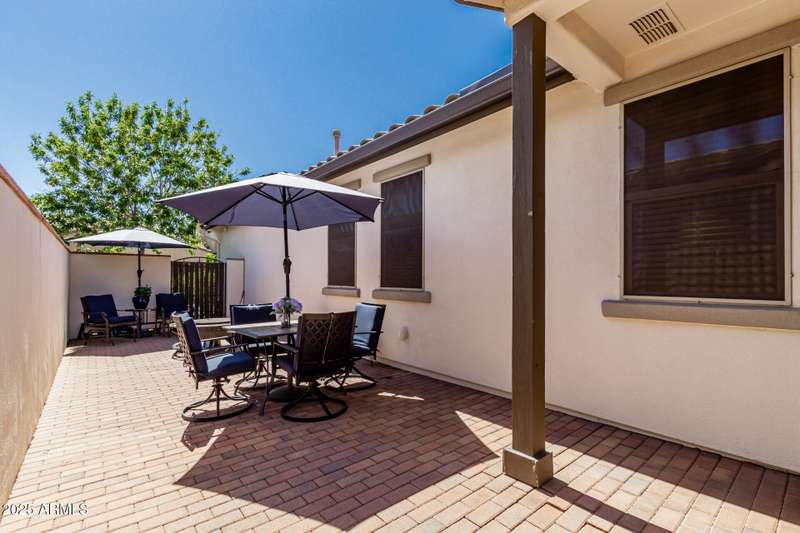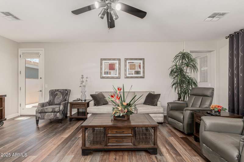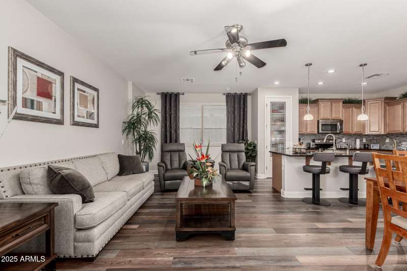 Say hello to your new home! This beautifully cared-for property features a mature landscape and many upgrades, including new exterior paint in 2022! The interior boasts an open floor plan with new wood-look floors, recessed lighting, and newer neutral paint (2023). The fully equipped kitchen showcases SS appliances, staggered cabinets, tile backsplash, a new dishwasher, and an island with breakfast bar. The primary bedroom has new carpet, a closet, and a pristine bathroom with dual sinks. The courtyard is completely finished with new gutters, pavers & wall stucco, plus the gas stub will allow you to hook up a grill or a griddle to enjoy outdoor dining. Painted 2 months ago, the garage is fully insulated & has attached cabinetry for added storage. More upgrades worth mentioning include new heating & cooling systems(1 year old), security door (2 year old), and sunscreens on all windows. The 7 year old, paid-off solar system will allow you to save $ on the electricity bill. In addition, this gem is minutes from parks & local hotspots. Why wait? Act now!