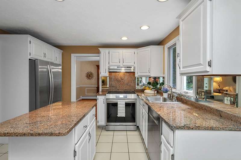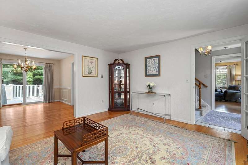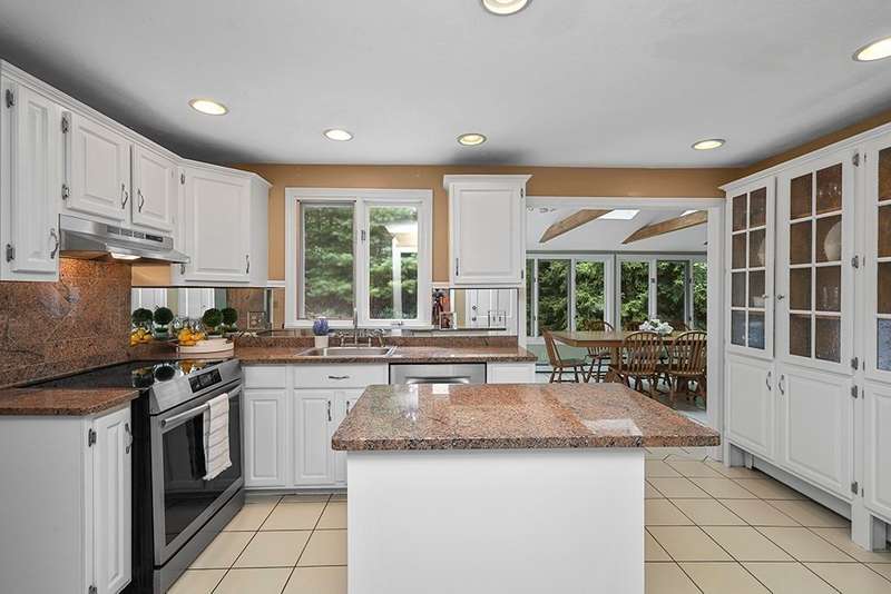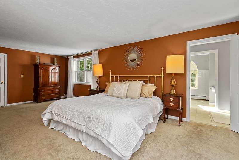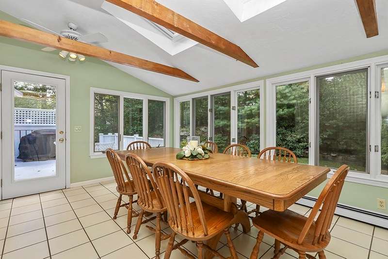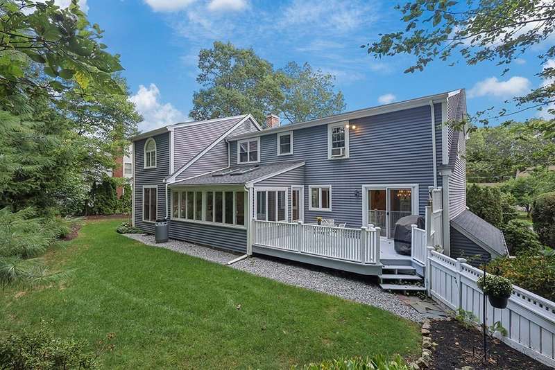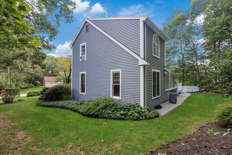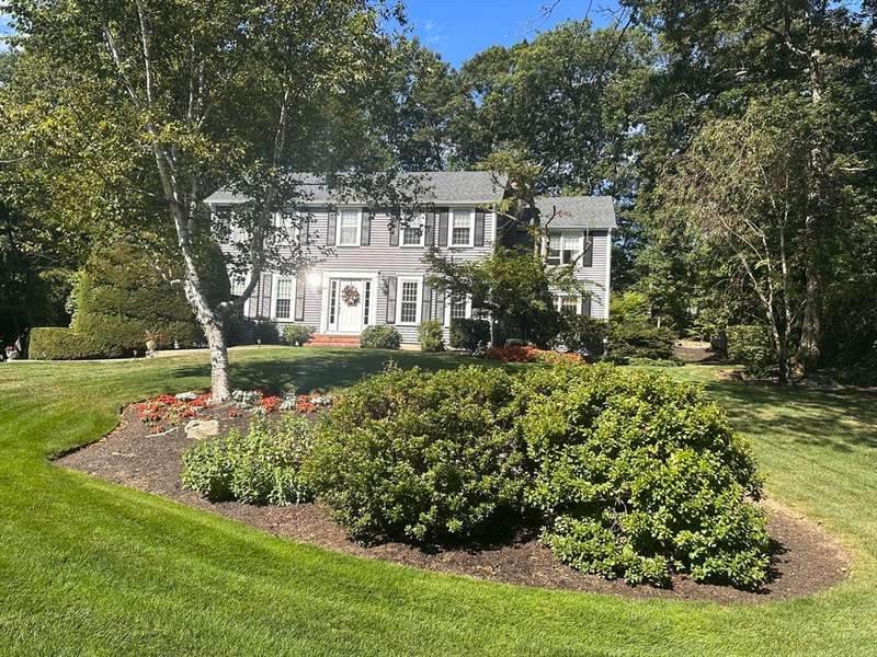 Welcome to "The Cliffs"! This GORGEOUS AND WELL MAINTAINED Saltbox Style Colonial sits on a spectacularly landscaped half acre with irrigation. Upon entering the home, you'll notice how light-filled it is! The spacious main floor boasts a dining, living, family room, 16' skylit sunroom, half bath AND a 350 sq ft bonus room with custom built-ins. This unique layout could entertain multi-generational living possibilities. The kitchen, with stainless steel appliances, granite countertops, and island, has an abundance of cabinetry. Upstairs, find a HUGE primary suite with a walk-in closet and large ensuite bath with a shower and soaking tub. Three generous bedrooms and another full bath complete the level. An inviting deck overlooks the private backyard abutting woodlands. Perfect location within walking distance to elementary, middle and high schools as well as easy access to all major highways! The updated roof, heating, oil tank and hot water heater make this home an easy one to love!