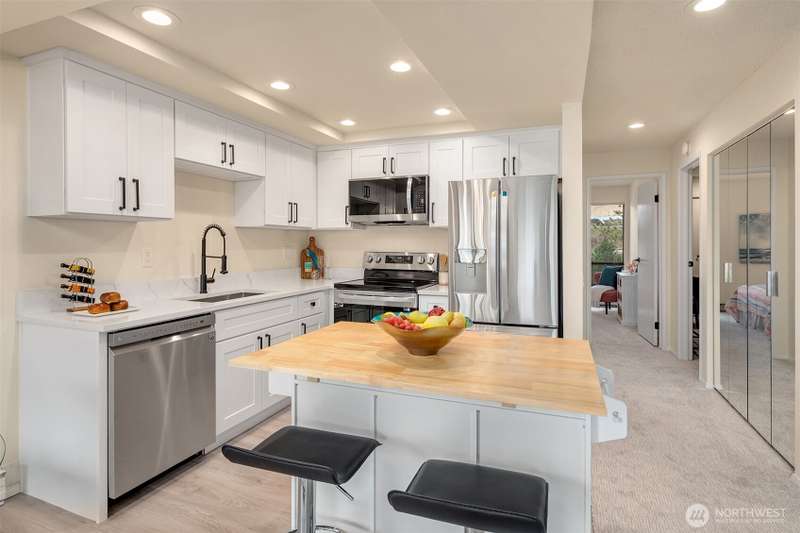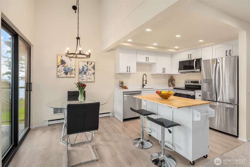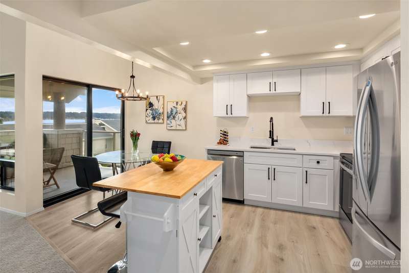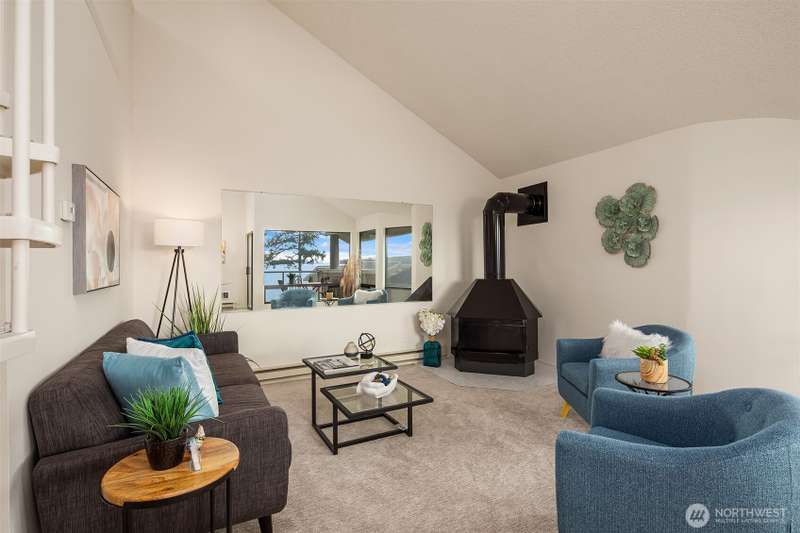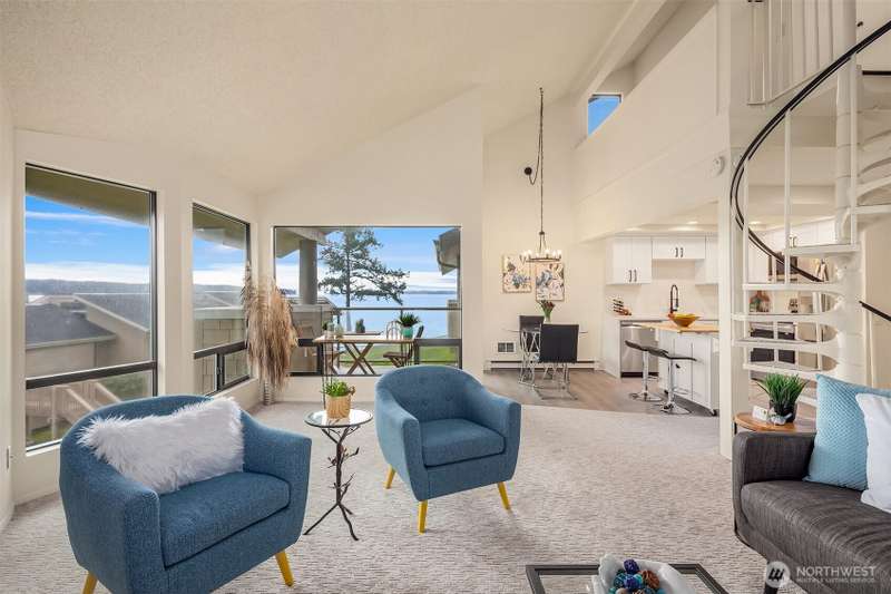 Here's your chance to own one of the only waterfront condo opportunities on Whidbey Island. Seldom available, unobstructed sound view condo unit in the "Mutiny Bay Riviera" community. Direct Access to no-bank Mutiny Bay Beach is just a short stroll from your door. Live the resort lifestyle on the tennis courts, basketball court, outdoor pool & clubhouse. The 2 bed + Loft, 1 3/4 bath top floor unit has just been renovated with a completely new kitchen including quartz counters, stainless sink, LG stainless appliances & LVP flooring. Renovation includes new Milgard living room insulated windows and slider to the view deck. All new carpet, light fixtures, decora switches & outlet + fresh paint thru-out complete the update. #201 Pkg Spot.