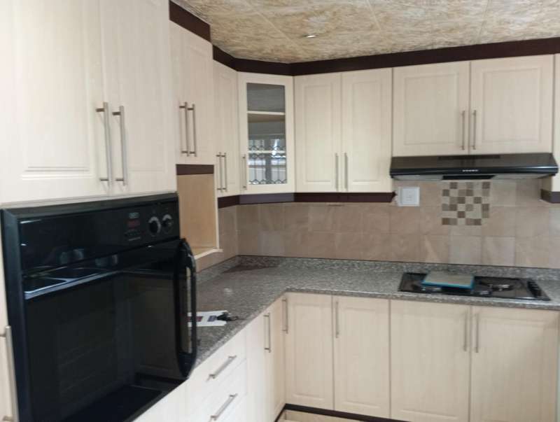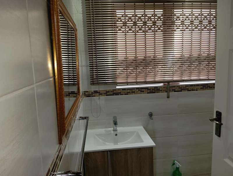 It consists of 3 Bedrooms with built in cupboards, blinds and 3 aircons, a fully fitted kitchen and open plan dining room / lounge, is fully walled with burglar bars, cameras and alarm system.