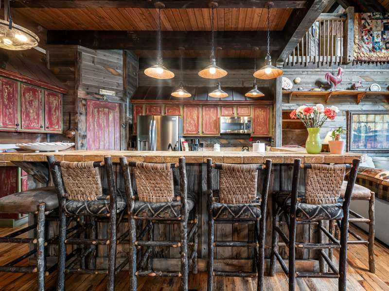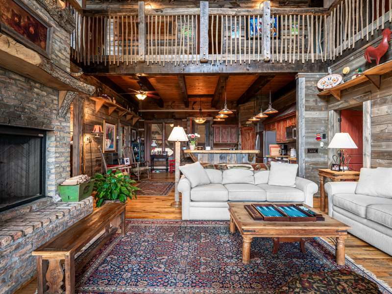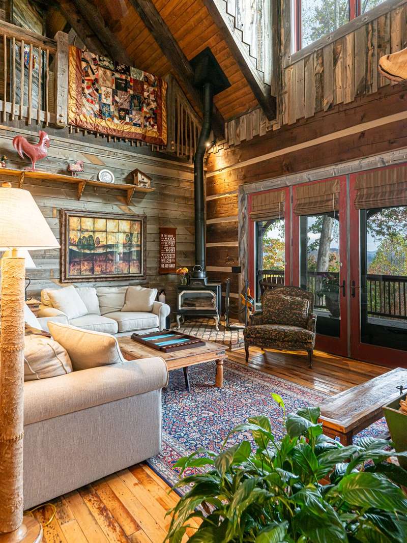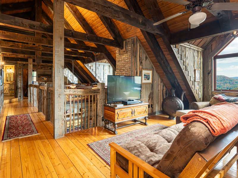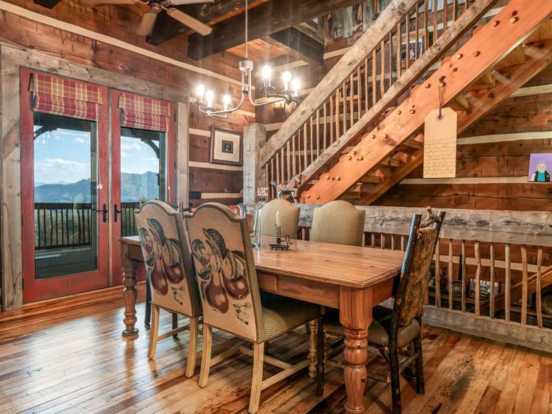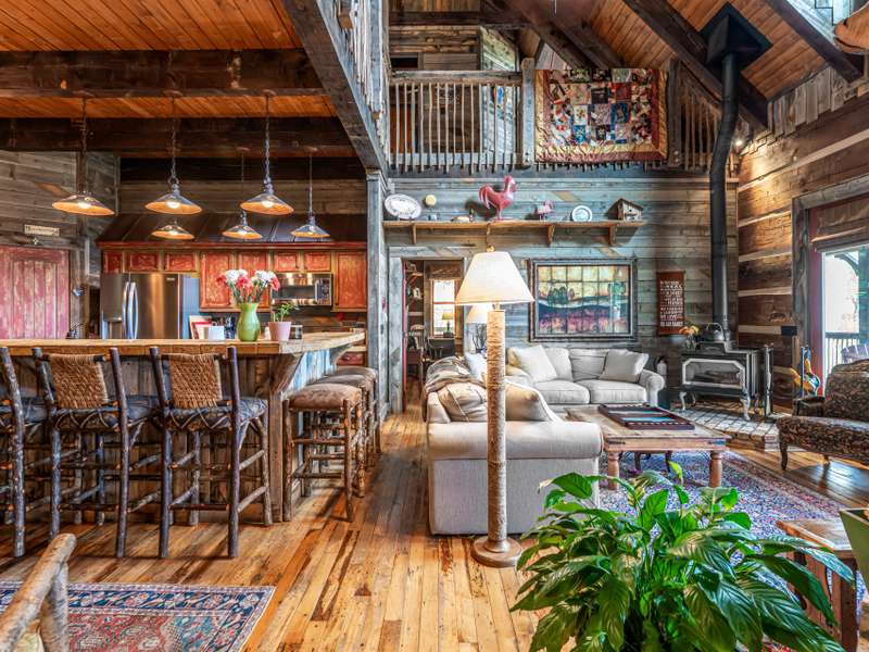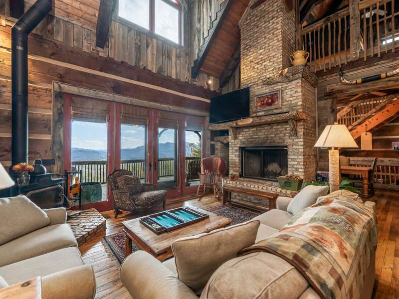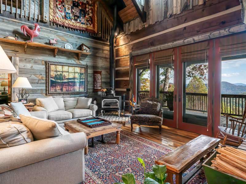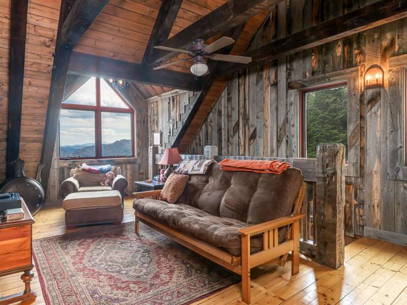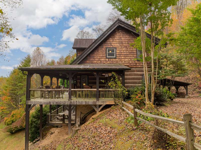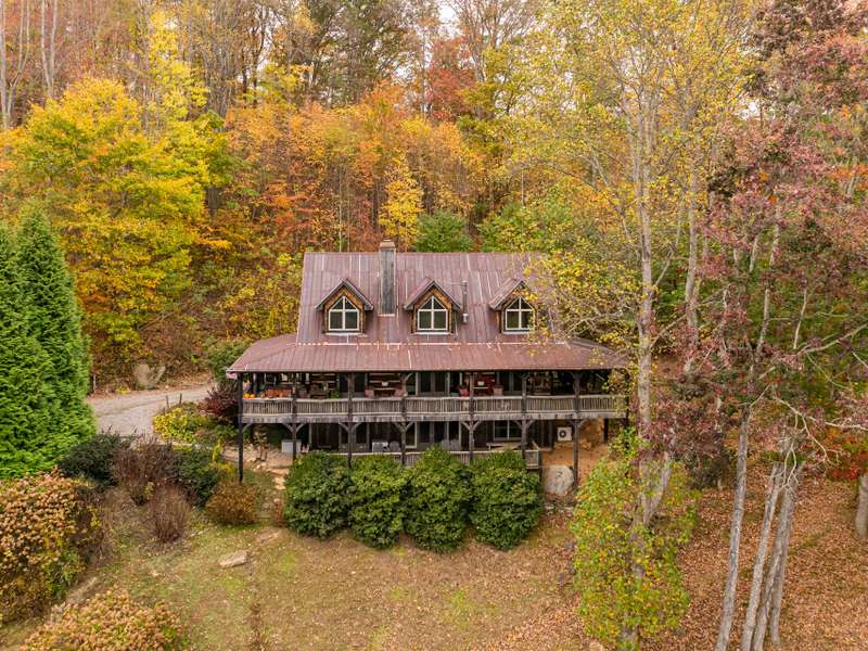 Only one home in Waynesville offers a seamless blend of luxury, craftsmanship, and breathtaking mountain vistas. Nestled on 2.44 acres of usable land, this custom-designed residence showcases artisanal reclaimed materials, open-concept living, and intentional design throughout. Built by the esteemed George Blackburn, this extraordinary property is a rare combination of artistry, functionality, and unparalleled mountain beauty. Step inside to discover remarkable custom woodwork, snow fence walls, and a stunning Chicago brick fireplace - all complimented by historic Maple Gin Mill floors. The gourmet kitchen features hand-painted cabinetry, tumbled marble tile, and stainless appliances. The great room boasts sweeping long-range mountain views, a cozy wood stove, and an adjoining dining space - perfect for entertaining. Retreat to the main level primary suite, complete with private deck access, two walk-in closets, and a luxurious bathroom with a clawfoot tub and walk-in shower. Upstairs, the guest rooms offer multiple spaces for rest or creative pursuits, two bathrooms, and two flexible alcoves - all framed by panoramic long-range mountain views. The terrace level allows for recreation, hobbies, and storage, finished with a full bathroom. The expansive main level cedar deck and terrace level deck seamlessly integrate the home with its natural surroundings, creating the perfect setting for outdoor enjoyment. Experience this one-of-a-kind luxury retreat where the mountains meet the clouds.