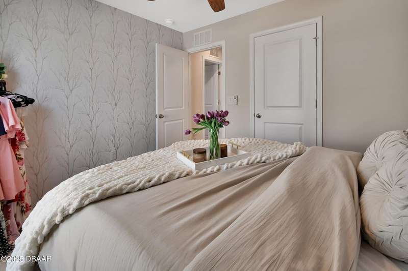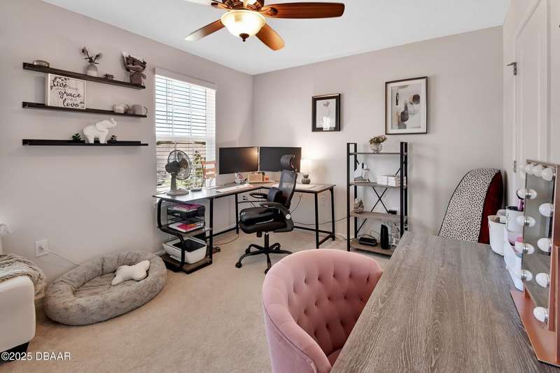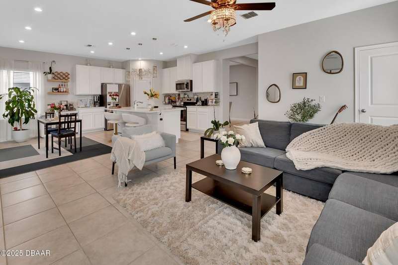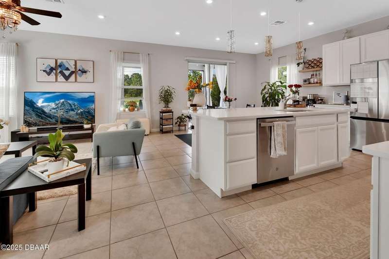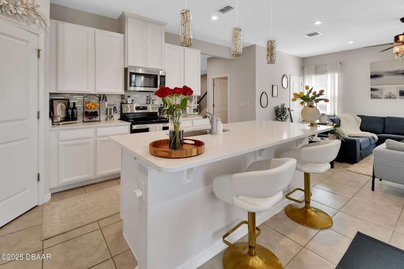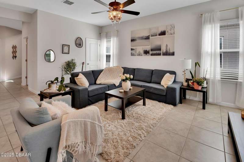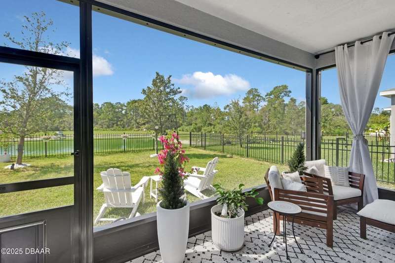 Welcome to your dream home in the Vibrant Lakewood Park Community Step into elegance with this stunning Windemere model home, built in 2022 by Ryan Homes. Located in the sought-after Lakewood Park neighborhood, this residence offers the perfect blend of modern design and natural beauty. As you enter the foyer, you're greeted by a striking staircase featuring a wrought iron and wood banister that leads gracefully to the second floor. Continue into the heart of the home where an open-concept layout seamlessly connects the living area, kitchen, eat-in space, and a versatile formal dining/flex room. The kitchen is a chef's delight, showcasing stainless steel appliances, Quartz countertops, pendant lighting, and a spacious island with bar seating"ideal for entertaining. The adjacent living area is bathed in natural light and offers serene views of the screened back porch, pond, and conservation area. Need extra space? The main floor includes a dedicated room that can be customized as a formal dining room, reading nook, home office, or anything your lifestyle requires. Upstairs, you'll find a generous loft, four bedrooms, and two full bathrooms. The primary suite overlooks the tranquil pond and features a walk-in closet and a luxurious en suite bath with a garden soaking tub, dual vanities, walk-in shower, linen closet, and an additional walk-in closet. The three secondary bedrooms are spacious and include built-in closets. Additional highlights include: HVAC system equipped with UV lights for enhanced air quality, screened back porch with peaceful pond and conservation views, flexible living spaces to suit your needs, fenced backyard, additional storage under stairwell, front landscaping with white marble chip rock, reclaimed water for irragation. Included in the association is a pool and playground. Easy access to I-4, Orlando and Daytona Beach within a 30 minute drive. Historical downtown Deland, Stetson University, Athens Theater, local eateries, and much more are nearby. This home is move-in ready and waiting for you to make it your own