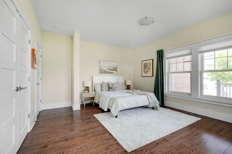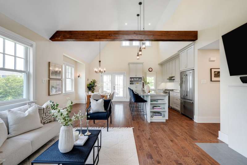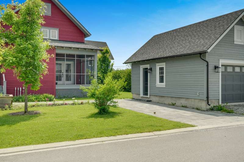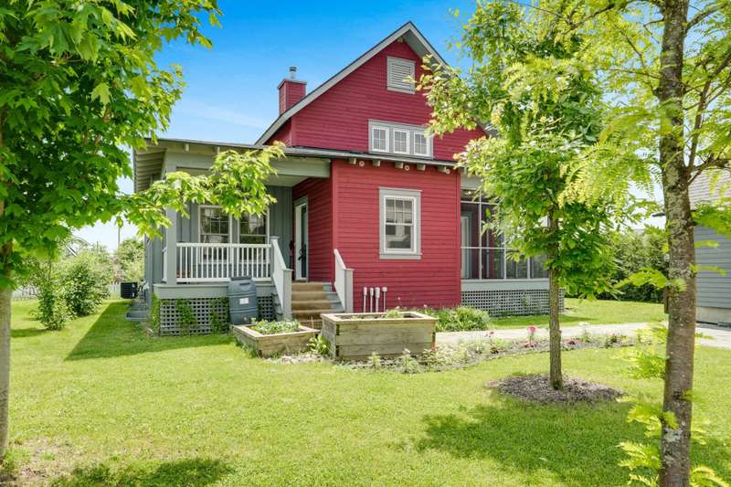 An exceptional opportunity to own a Hendrick Farm bungalow, rarely available and beautifully appointed. This sunlit, park-facing residence features soaring 17-foot cathedral ceilings, exposed pine beams and a wood-burning fireplace anchoring its airy open-plan design. Expansive windows frame serene views and three covered porches invite outdoor living in every season. The main level offers two well-proportioned bedrooms with shared bath and powder room, while the finished lower level provides generous additional space. Nestled on a scenic lot in a charming pocket neighbourhood, the home lies only steps from the shops and cafes of Old Chelsea!