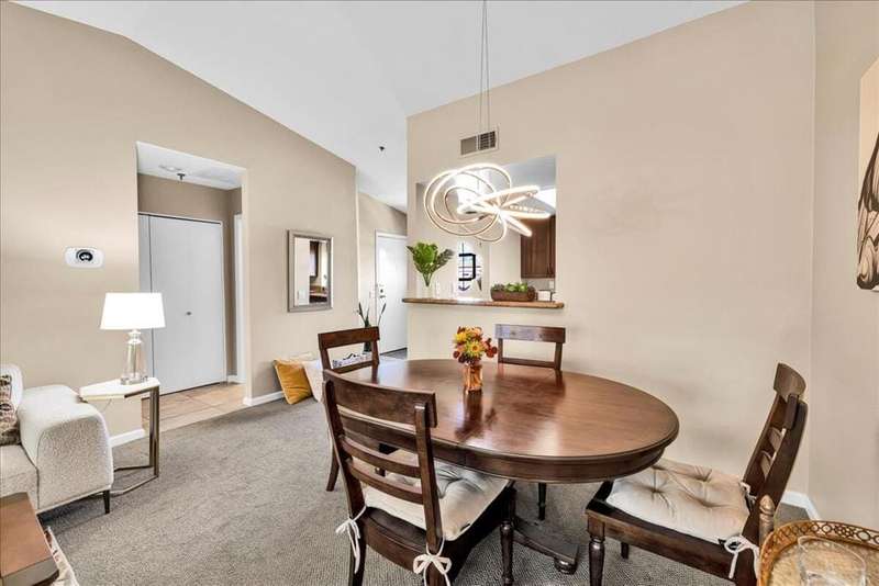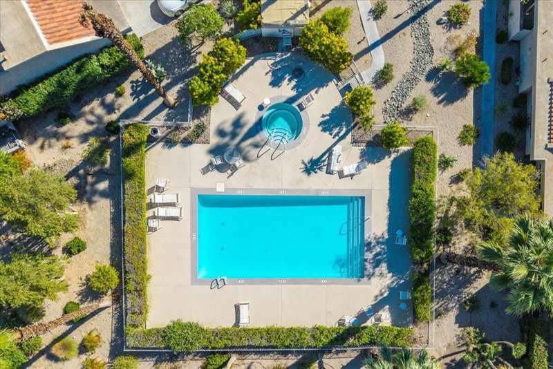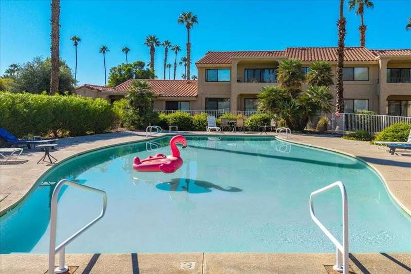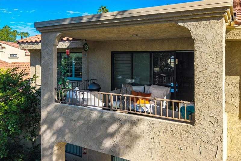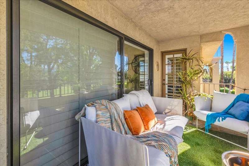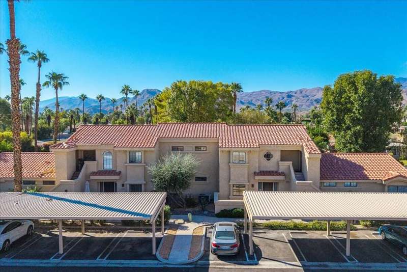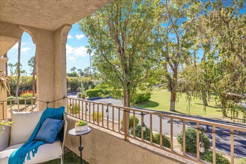 Beautifully Updated 2-Bedroom Condo with Mountain ViewsDiscover desert living at its finest in this stylishly updated two-bedroom, two-bath condo with 1,197 sqft of comfortable living space. Perfect as a full-time residence or seasonal getaway, this second-floor home features vaulted ceilings and plantation shutters throughout, creating a bright and airy atmosphere.The modern kitchen is a chef's delight with stainless steel appliances, upgraded cabinetry, and sleek granite countertops, plus a breakfast bar ideal for casual dining or morning coffee. The open-concept living and dining areas, finished in warm neutral tones, provide a welcoming space for both relaxation and entertaining.Enjoy excellent bedroom separation for privacy, with both bedrooms offering spacious walk-in closets. The updated bathrooms feature granite counters and upgraded cabinetry. Step outside to the covered, tiled balcony and soak in the serene mountain views, the perfect setting to unwind at the start or end of the day.Recent upgrades include HVAC (2018) and water heater (2017). Located in the sought-after Cathedral Canyon Country Club, where residents enjoy golf, tennis, plus HOA benefits that include trash, cable, internet, and security service. Don't miss the opportunity to own your slice of desert paradise!