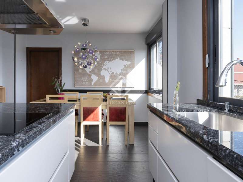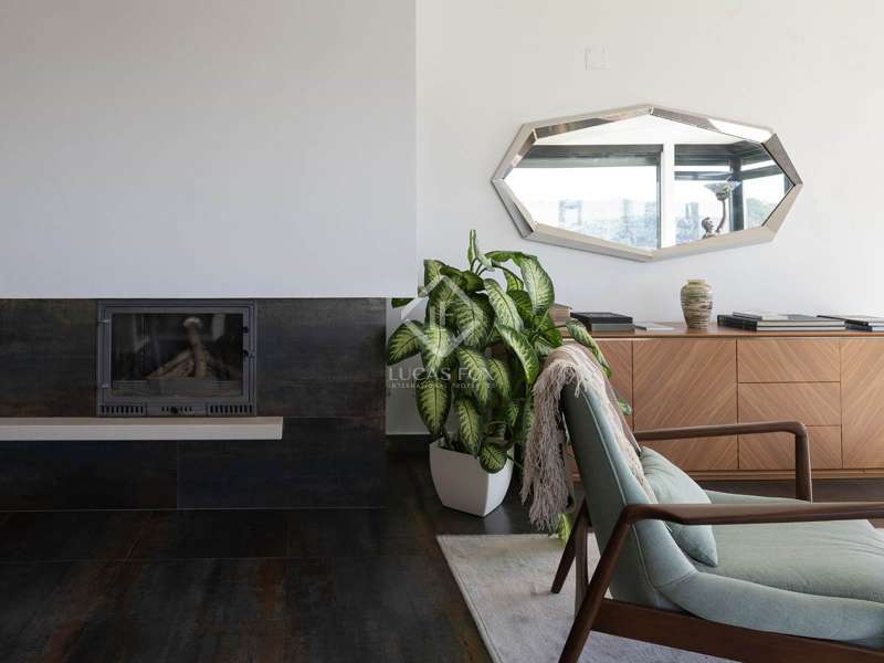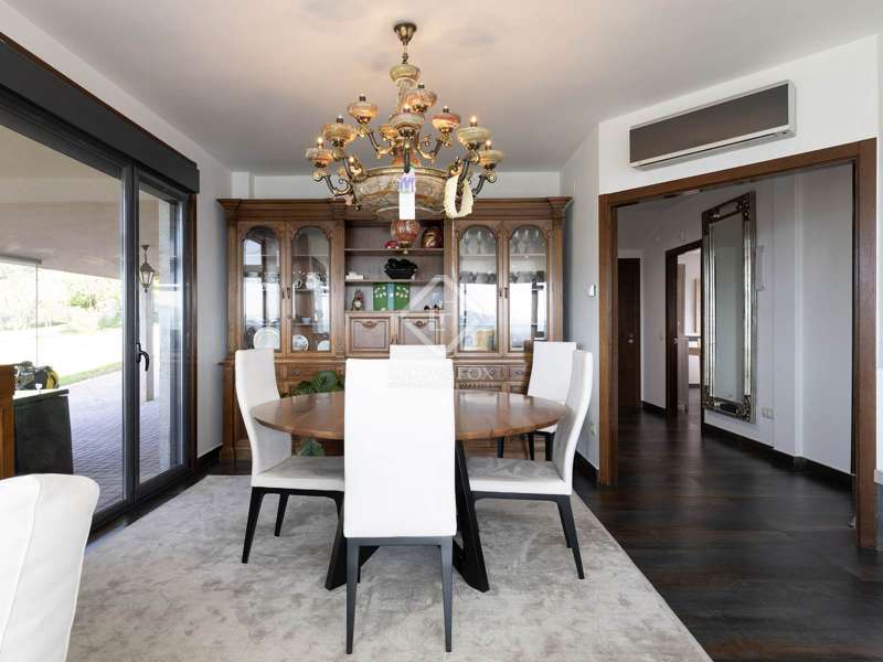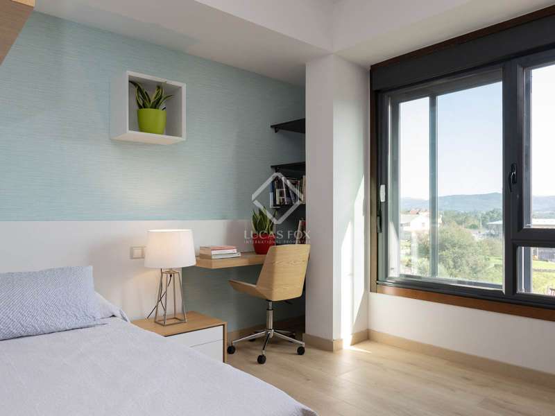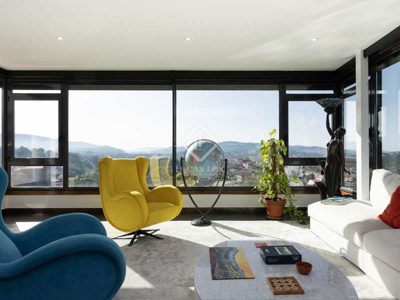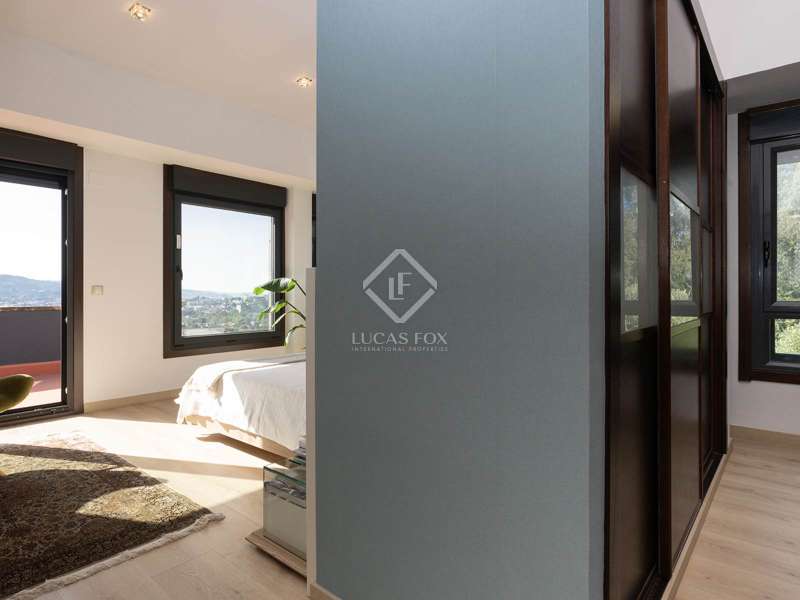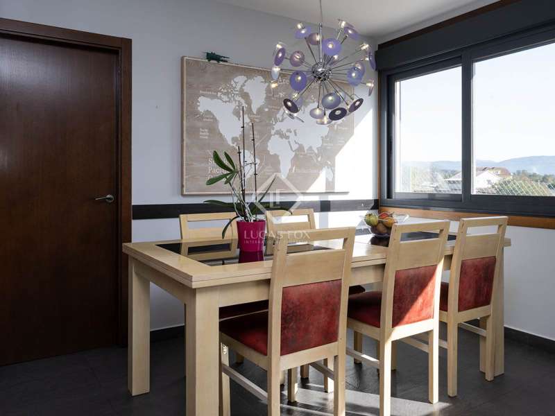 This modern house offers views over the monastery of Lerez, the estuary and city of Pontevedra as well as the hills beyond from its elevated vantage point, and features an open-plan layout with designer touches. Finished in traditional, locally sourced stone, this property was built in 2008 and has been upgraded through the years, with high-quality flooring and electric blinds both inside and out in most parts of the house. Views over Pontevedra are afforded by a panoramic window from the living room. Arriving up a driveway that winds its way up to the rear of the house, there is parking for a number of vehicles outside, as well as a two-car garage within the property. Once inside, we find a modern layout, with a large kitchen / diner with an island, airy and bright spaces with a lounge boasting a picture window out onto the Galician countryside, the monastery, and the town and river below. Heated flooring is installed throughout the ground floor, and there are also air conditioning units in the living area and all bedrooms. Completing the ground floor layout is a guest bathroom. Upstairs, on the first floor, we find two bedrooms which share a bathroom, another bedroom currently used as an office, plus the master suite featuring walk-in wardrobe and en-suite bathroom, as well as a terrace with fantastic views and an electric awning to keep you in the shade should you desire. Downstairs, there is also a liveable basement level with a large family / play room and another bedroom. Outside, there is a good mix of lawn and patio areas, as well as a covered swimming pool and of course the obligatory barbecue area for entertaining family and friends. This house would suit clients looking for a quality construction with a modern and airy layout, within a short drive to Pontevedra city centre and with easy links to the rest of Galicia both via road and public transport. It also benefits from a peaceful yet prominent location with views over the countryside and the town. Please contact us for further information.