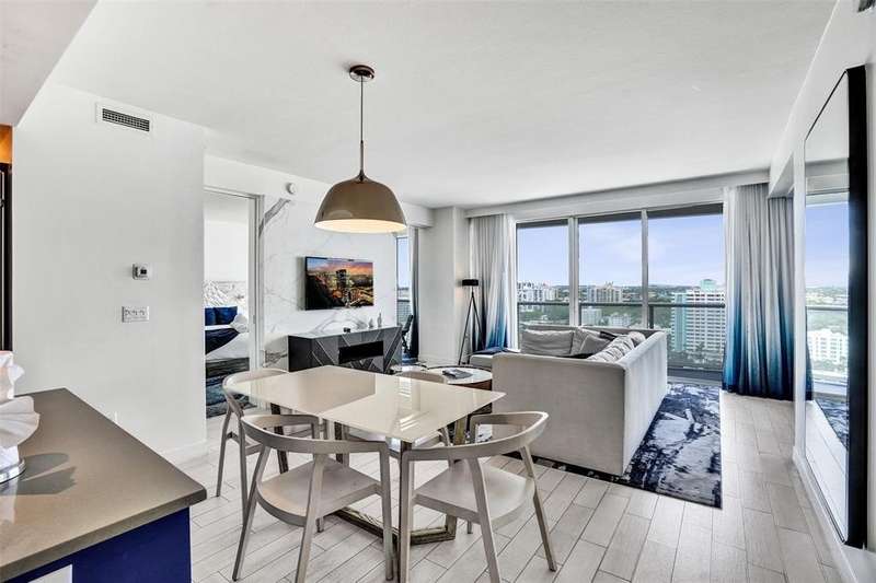 Fully furnished OCEAN VIEW 2/BR 2 BA in best area of Fort Lauderdale Beach. Expansive sunny residence and huge balcony with access from living and bedroom through floor to ceiling double glass doors. 2 primary suites, 9ft ceilings, fully equipped kitchen, walk-in shower, spa-tub, washer & dryer, extra storage closet. With Sophisticated city vibe, this 1176 square foot 2 BR 2BA penthouse includes: Split open floor plan with spacious living/dining areas and 2 master king size suites & spa like baths; Breakfast island. Ideal for entertaining . Washer/dryer & home safe, stainless appliances & stone countertops; Expansive balcony! Garage parking, concierge and 24 hour security. TWO heated pools all just steps to the ocean's edge! Rates from $8500 to 12k per mo. Interior Photos soon.