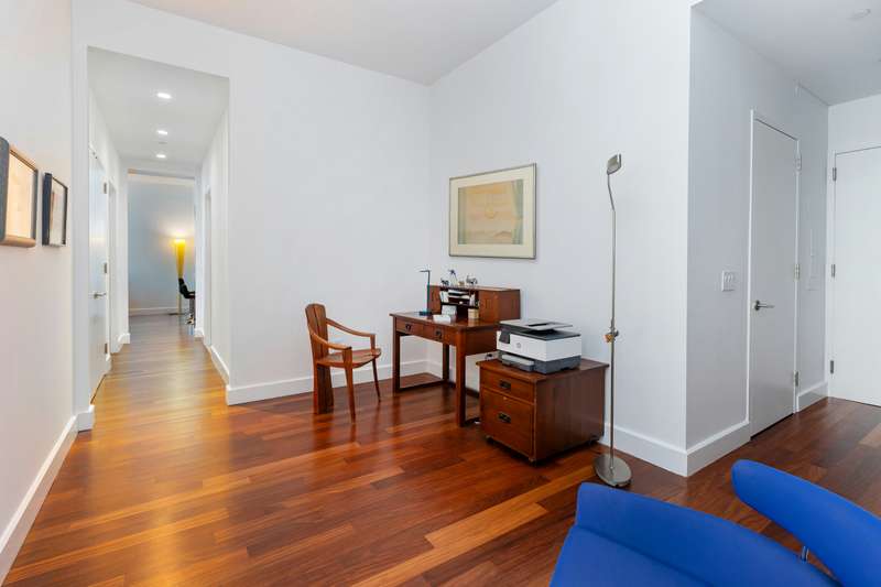 Welcome to residence 6FG, an expansive 3-bedroom home in mint condition, spanning 2,072 square feet and boasting the highest ceilings in the building at 10 feet 8 inches. Enter through the large 15 ft. foyer with two coat closets and a powder room. The large entertaining space boasts a south-facing living room, separate dining, and an open kitchen with not one but two islands. There are top of the line stainless steel appliances, including Viking stove and refrigerator, Bosch dishwasher, Caeserstone countertops, separate pantry, and an abundance of cabinet storage. The private rooms are accessed through a hallway and a one of a kind study. The primary bedroom has an en-suite sauna-like bathroom and an enormous walk-in closet. There are two more sizable bedrooms, one currently set up as a library, and another shared bathroom. There is yet another space, perfectly situated and suited for a home office or multiple other uses. Finally, this perfect home has what every Manhattanite desires-a separate laundry room. Originally, a kitchen, it is home to the apartment's Bosch washer and dryer, a second Viking refrigerator, Bosch dishwasher, sink, and tons of cabinetry. This beautiful home has central AC, Brazilian Afrormosia hardwood floors and ample closets throughout. The apartment comes with a sizable private storage unit in the basement.