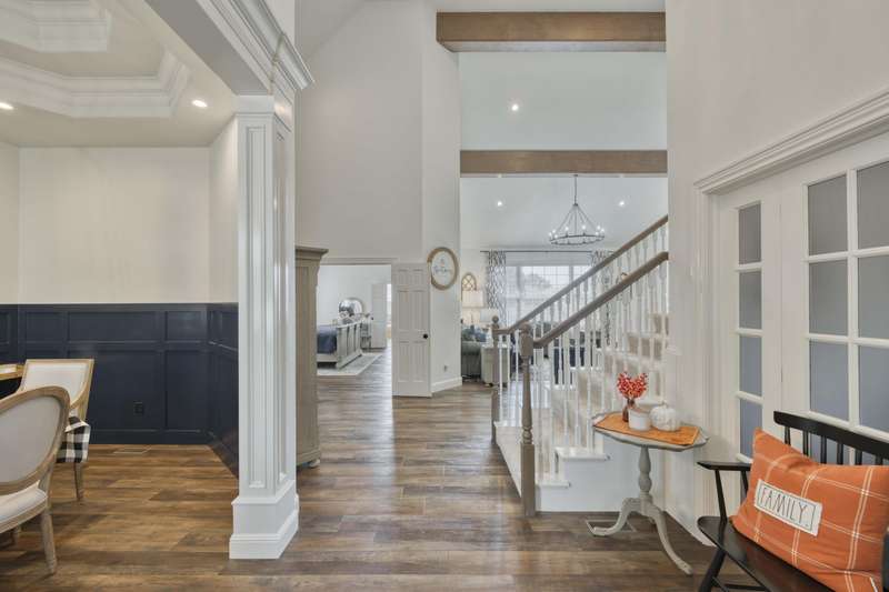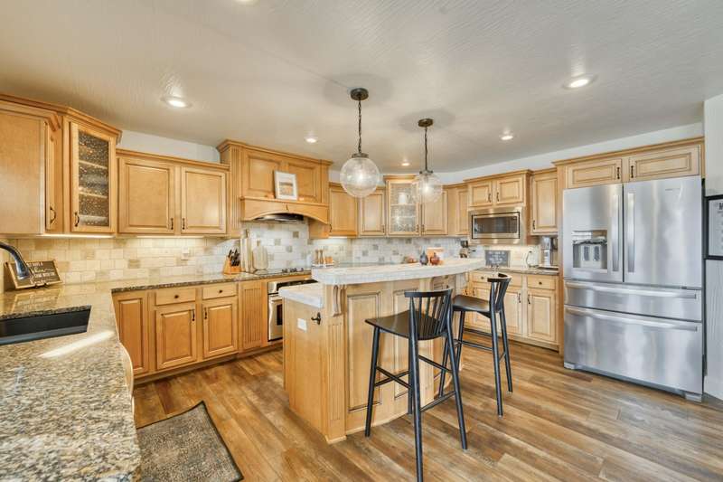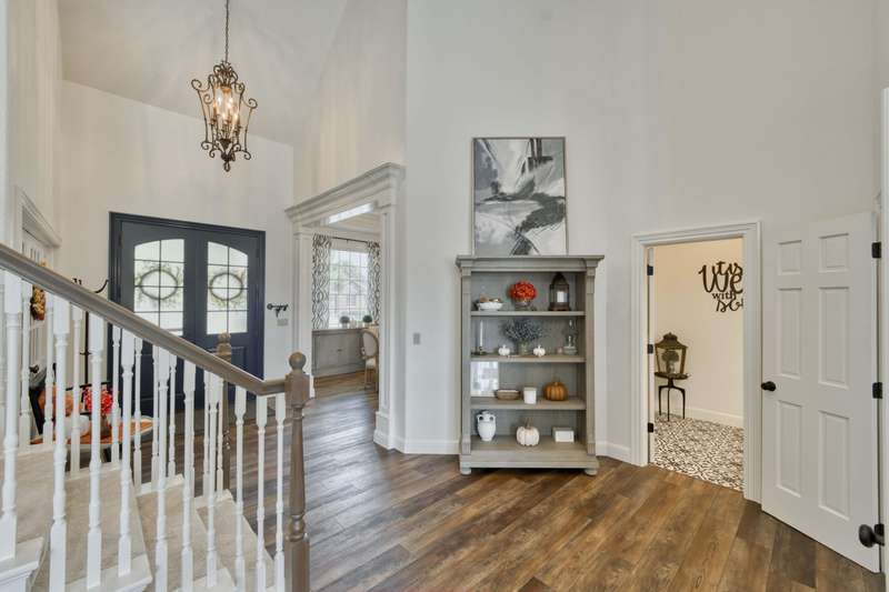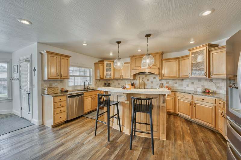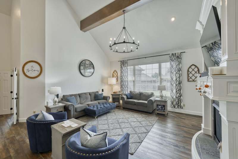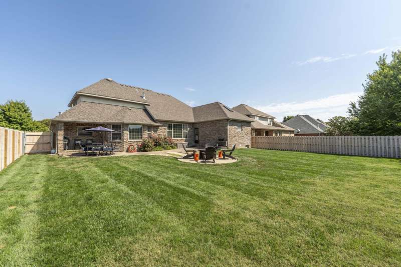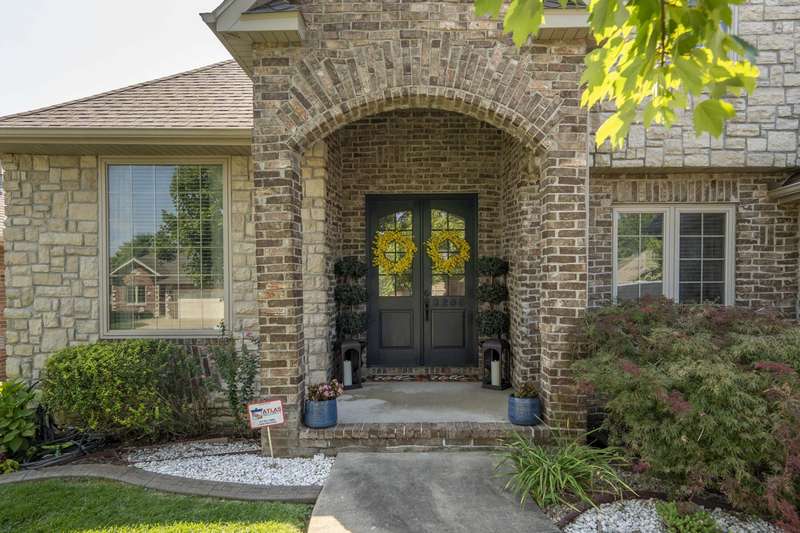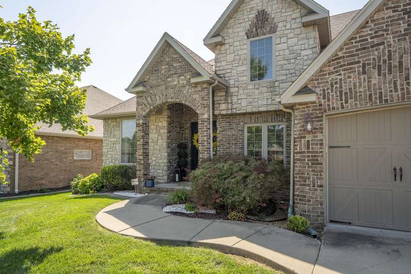 Welcome home to this stunning and spacious property in the highly sought-after Kickapoo School District! This 4-bedroom, 2.5-bathroom home offers a generous 3,294 square feet of comfortable living space, combining luxury with a relaxed feel. Step inside and you'll immediately notice the grand entry, with a beautiful staircase and luxury vinyl plank flooring that flows throughout the main level. This floor plan is designed for both everyday life and entertaining, with a formal dining room and a dedicated office for those work-from-home days.The open-concept living area is perfect for gathering with friends and family. The gourmet kitchen is a chef's dream, opening up to a dining space and a cozy hearth room. A spectacular see-through fireplace connects the main living room to the hearth room, creating a warm and inviting atmosphere you'll love.Tucked away on the main floor is the private primary suite. You'll be amazed by the dramatic vaulted ceilings and exposed beams, giving the room a truly special feel. The en-suite bathroom is your personal oasis, complete with a jetted tub and a separate shower, perfect for unwinding after a long day.Upstairs, there are three more bedrooms and a full bathroom, plus a convenient built-in office area that's great for homework or managing household tasks.Outside, the curb appeal is undeniable. The home features classic all-brick and stone construction and a gorgeous, beautifully maintained yard that's ready for outdoor fun. A three-car garage provides tons of space for your vehicles and storage. This remarkable property offers an incredible blend of style, comfort, and convenience.