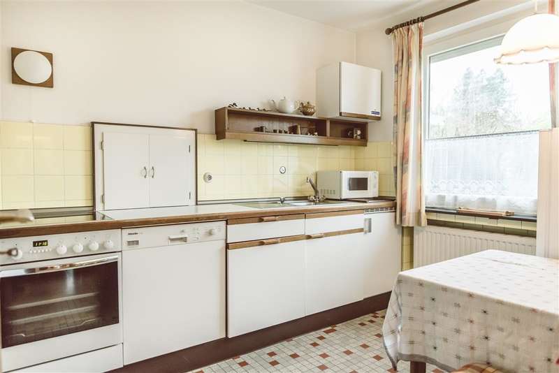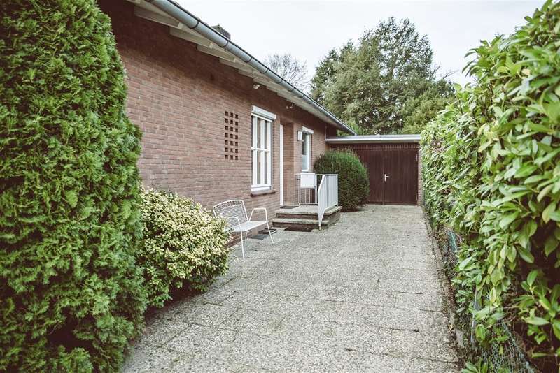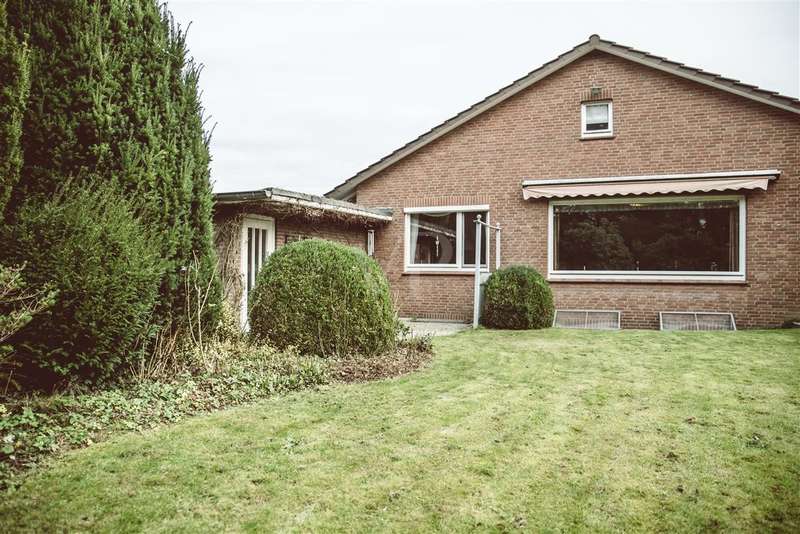 This solid bungalow was built in 1963 in clinker brick construction and is located on an approx. 751 m² hereditary building plot. The house has a living space of approx. 145 m², which is characterized by a practical and functional room layout. The exterior of the property is in a well-kept condition, while the interior is in need of modernization/renovation to bring it up to today's living standards. The bungalow boasts a classic floor plan with generous living and usable areas. The adjoining conservatory, equipped with large sliding windows, creates a bright and inviting atmosphere and provides direct access to the terrace. This terrace can be accessed both via the garage and from the garden. The garden is well-grown, secluded and offers plenty of privacy. It is suitable for both relaxation and gardening activities. Inside the house there is a full bathroom and a separate guest WC. The heating system was renewed in 2011. There are also built-in wardrobes in some areas, which provide additional storage space. Overall, the house offers potential to significantly increase living comfort through targeted renovation measures. Outdoor facilities and garage parking space The bungalow has a garage with access to the terrace and garden. The outdoor areas are generally in a well-kept condition and underline the solid construction of the house. Leasehold plot and contract conditions The property is a hereditary building plot with a current contract until 30.09.2042, which amounts to € 90.48 per month. If the contract is extended early, the new ground rent would amount to € 676.25 per month. These conditions should be taken into account when making a purchase decision. Summary This bungalow offers a solid basis for a contemporary redesign. The good basic fabric, the generous living space and the well-kept garden make the property an interesting option for buyers looking for a property with development potential. The conservatory and the direct connection between the garage, terrace and garden are particularly practical features that make everyday life easier. With an investment in renovation and modernization, this house can become an appealing and comfortable home.