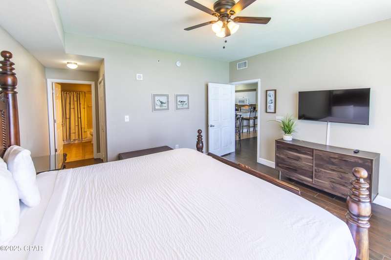 Wake up to gorgeous Gulf views from your master bedroom in this beautifully maintained 1 bedroom, 2 bathroom condo at Tidewater Beach Resort. Offered at $499,000, this unit is perfectly positioned for both personal enjoyment and strong rental potential. Enjoy an open-concept layout with a spacious kitchen, granite countertops, and floor-to-ceiling windows that flood the living space with natural light. The master suite offers direct access to the balcony and breathtaking water views. A separate bunk room provides extra sleeping space for guests or little ones. This is perfect for vacationers and families alike. Tidewater Beach Resort features top-tier amenities including two large lagoon pools, an indoor heated pool, a Gulf-front fitness center, a movie theater, on-site dining, and 24-hour security. Located within walking distance to Pier Park and the best of Panama City Beach shopping, dining, and entertainment. Don't miss your chance to own a slice of paradise with direct access to sugar-white sands and unmatched Gulf views.