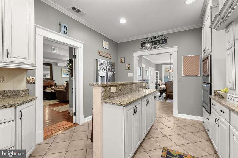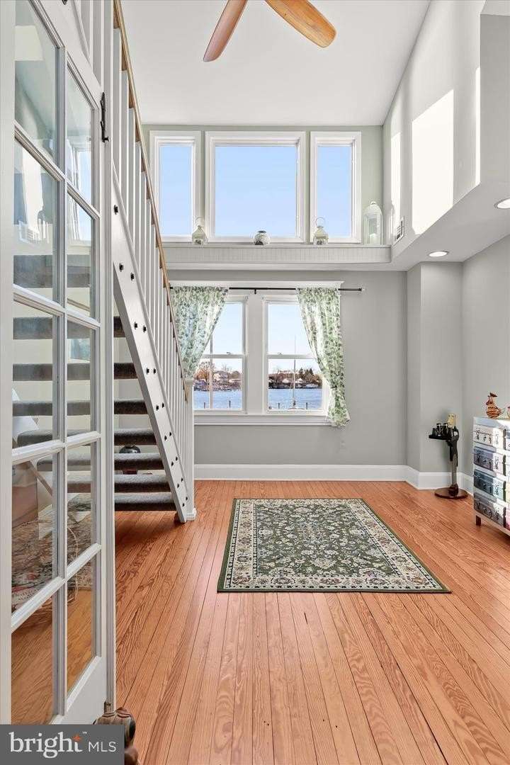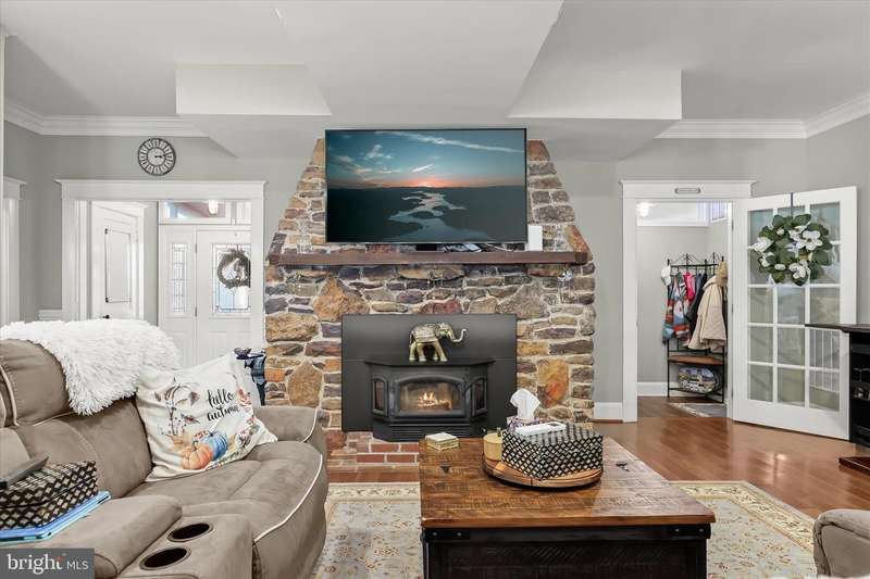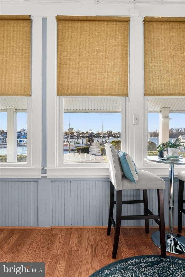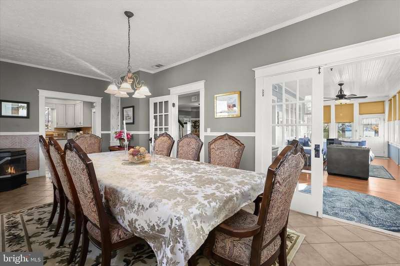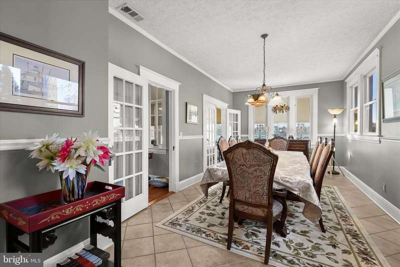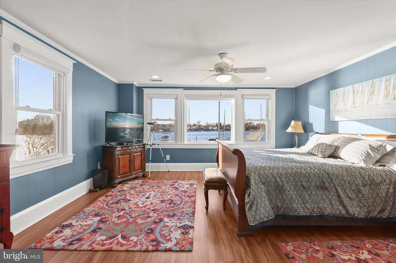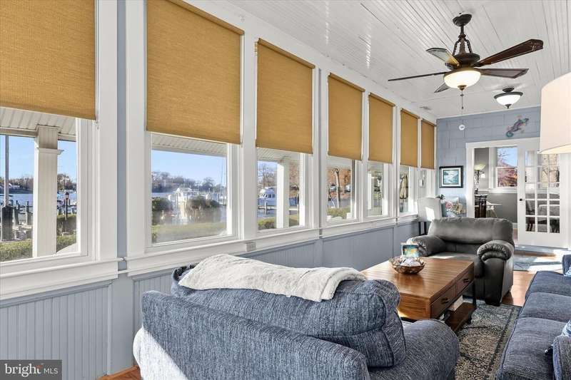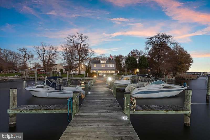 Introducing this extraordinary five-bedroom, four-bathroom waterfront home in Wilson's Point, set on a magnificent 0.85-acre lot with sweeping views, exceptional outdoor amenities and approximately 165-feet of water frontage. This property delivers a true waterfront lifestyle and a rare income-producing opportunity with a private pier featuring 28 slips, each equipped with power and water. With three levels of living space inside, the home blends modern updates with classic charm throughout. Elegant crown moldings, glass French doors, and abundant natural light shape the inviting main level. The living room is anchored by a stacked-stone fireplace with a wood stove, complemented by a recently installed mini-split system for added comfort. Prepare your favorite meals in the updated kitchen that boasts granite countertops, a tile backsplash, 42""Â? cabinetry, a center island, and stainless steel appliances. The adjacent dining room offers a warm space for hosting gatherings with a pellet stove. A four-season sunroom provides stunning waterfront views, a second pellet stove, a full bathroom, and access outside. The main level also includes a laundry room and a foyer that opens to a screened-in porch. Upstairs, the redesigned primary bedroom is a tranquil retreat with beautiful water views, two walk-in closets, and an updated ensuite bathroom with a dual-showerhead walk-in shower. Two additional bedrooms with walk-in closets share an updated hall bathroom with a frameless glass walk-in shower. A versatile two-story den offers flexible use as an office, sitting room, or exercise space, leading to the top level with a loft and two more bedrooms. Outdoor living is unmatched, with a side deck and covered porch for enjoying sunsets, a lush lawn for recreation, and an expansive screened porch at the back of the home for relaxing or entertaining. An outdoor bathroom with a walk-in shower is ideal for guests coming in from the water. The detached two-level garage accommodates three vehicles and includes a workshop and attic storage, while a fenced patio beside the garage provides another outdoor gathering space. Ample driveway parking for at least ten vehicles completes the setting. Nestled in Wilson's Point, this home offers the perfect blend of a quiet waterfront community and convenient access to major routes, restaurants, marinas, and all that Middle River has to offer.