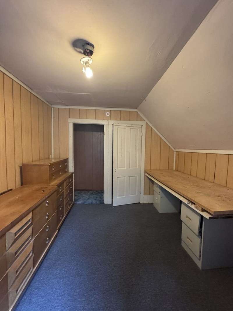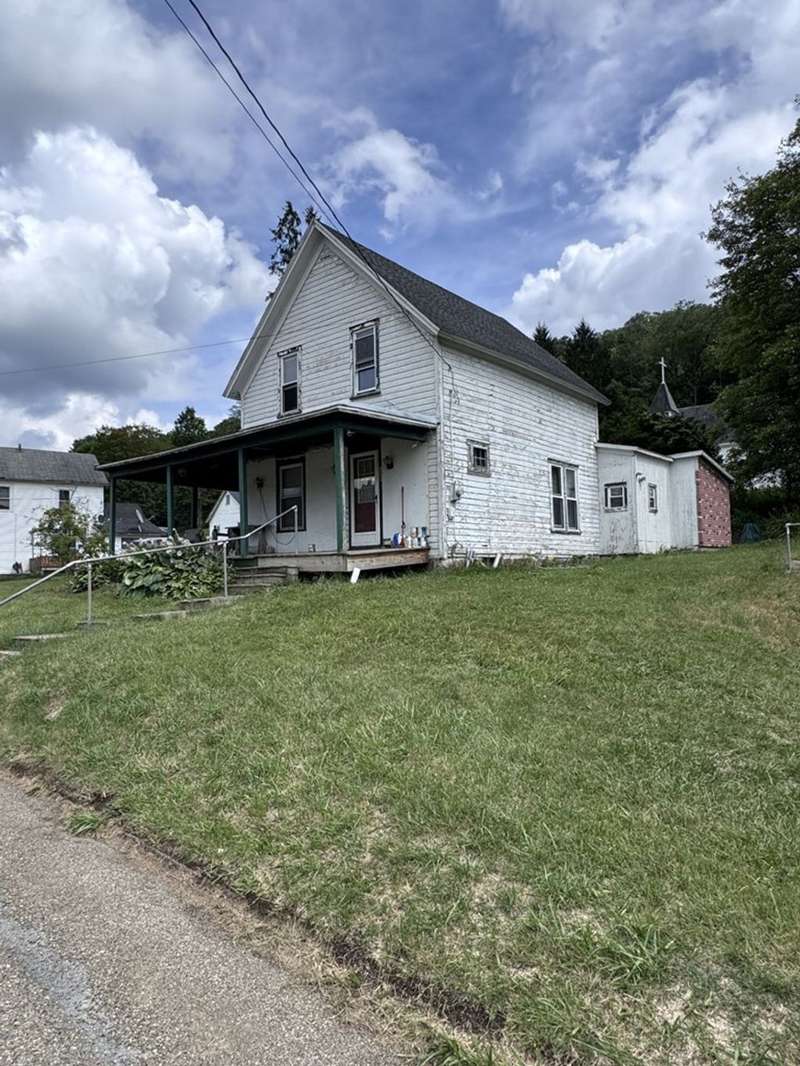 This two-story home presents an opportunity for those looking to invest in a property. The layout includes a convenient first-floor bedroom and bathroom, making it ideal for accessibility. Upstairs, you'll find three additional bedrooms. A detached two-car garage provides parking and extra storage. Please note, this property is a fixer-upper. The plumbing needs repaired.
