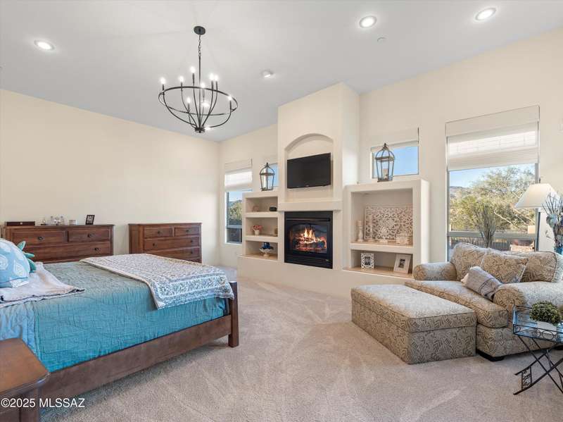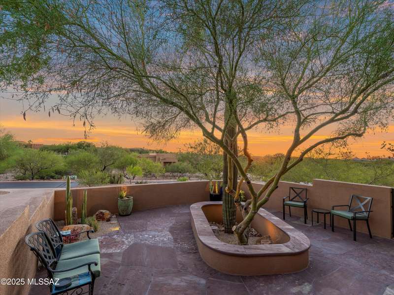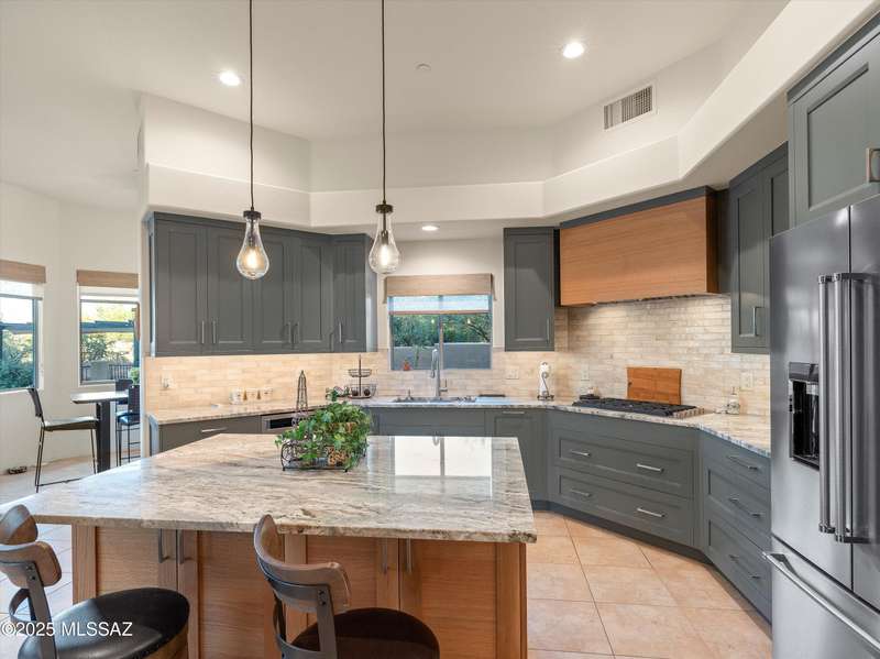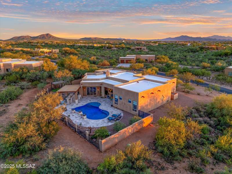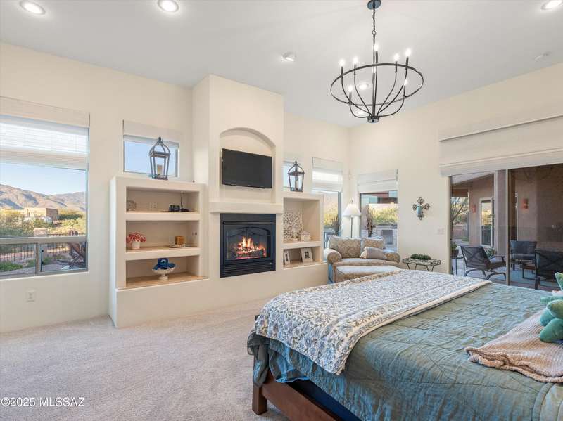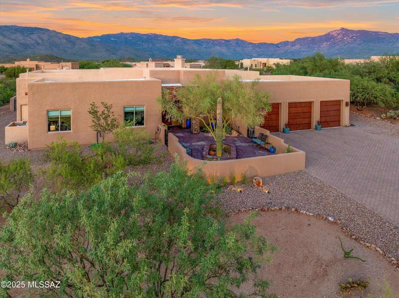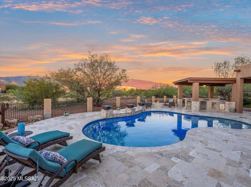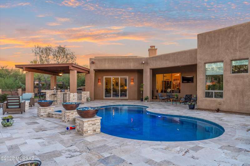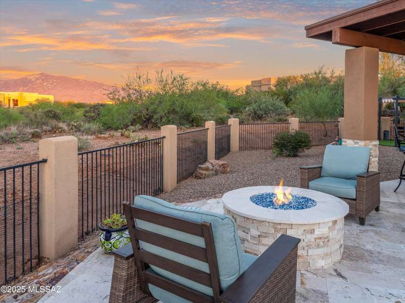 Luxurious, resort-style desert living, indoors and out. Nestled in the exclusive, gated Coyote Creek neighborhood, this breathtaking luxury residence offers elegance, comfort and truly impressive outdoor living spaces. Enjoy phenomenal panoramic mountain views from every angle, a brand new oasis-like pool with spa-like water features, and a very spacious travertine pool deck, all completed in 2024. The outdoor space is an entertainer's dream, featuring citrus & fig trees, a cozy fire pit, a welcoming, large front courtyard with fountain, and professional landscaping, irrigation and lighting throughout. Inside, find a brand new custom kitchen, soaring ceilings, light, bright spaces and gorgeous views from large windows. Large 3-car garage with high ceilings and epoxy floor. A must-see!