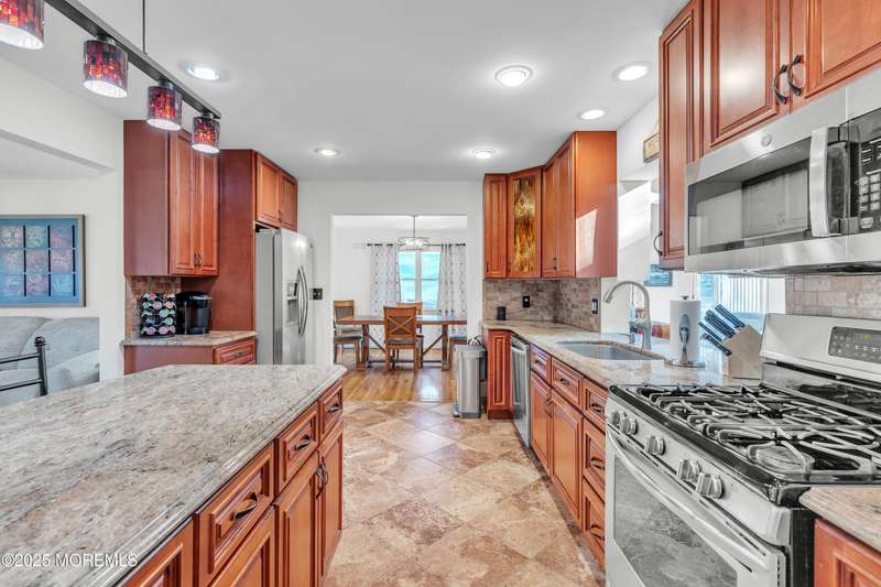 Welcome to your spacious retreat in Forked River Point! This S-P-R-A-W-L-I-N-G 1,858 sq ft ranch PLUS FULL BASEMENT combines effortless luxury and relaxed living. Dive into your private HEATED SALTWATER POOL, surrounded by NEW VINYL FENCING, and NEW IRRIGATION SYSTEM for a lush lawn, NEW TIMBERLINE ROOF, NEW AC, and NEW attic fan. Inside, 3 LARGE BEDROOMS, gleaming HARDWOOD FLOORS through-out, stunning kitchen with GRANITE COUNTERTOPS and 2 NEW FULL BATHS set the tone for this beauty. The family room's GAS FIREPLACE and NEW SKYLIGHTS fill the home with warmth and light. Washer and dryer are conveniently located on the main level. Completely TURNKEY-your dream shore home awaits! THIS ONE HAS IT ALL!