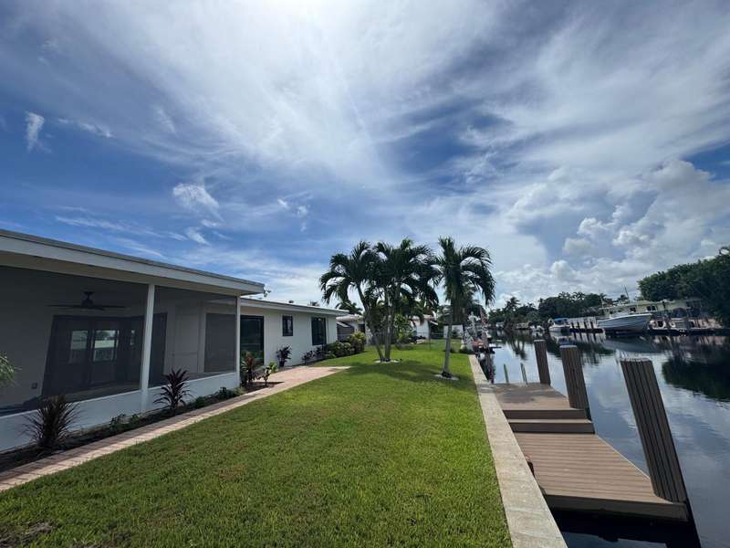 Enjoy waterfront living with 70' of frontage on navigable canal with ocean access and stunning western sunsets. This updated home features freshly painted interiors/exteriors, renovated bathrooms, new AC, and a 20' dock with step-down access. The modern kitchen offers stainless steel appliances, plus a new stackable washer/dryer for convenience. SMART HOME-ready, the property includes controllable interior/exterior lighting and outlets with standard power plus USB/USB-C ports. Lush landscaping completes the setting, with tropical fruit trees adding charm. Perfectly located in Pompano Beach, this rental combines modern upgrades with a serene waterfront lifestyle.