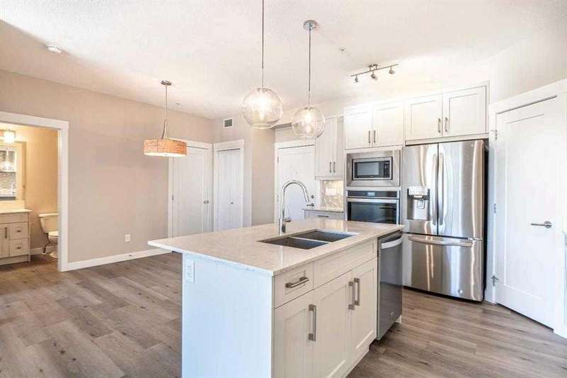 Welcome to #217, 30 Walgrove Walk SE – a beautifully designed 2-bedroom, 2-bathroom condo with 841 sq. ft. of living space, located in the vibrant and family-friendly community of Walden. This open-concept home impresses the moment you walk in, featuring a gourmet kitchen with quartz countertops, full-height cabinetry, stainless steel appliances, a built-in wall oven, and a large island with seating – perfect for entertaining. The bright living room opens onto a private balcony, ideal for morning coffee or evening relaxation. The primary bedroom is a true retreat with a walk-through closet and a private 4-piece ensuite. A second bedroom and full bathroom provide flexibility for family, guests, or a home office. You’ll also love the convenience of in-suite laundry with extra storage space. Additional highlights include: • Modern wide-plank flooring throughout • Secure building with elevator access • Titled underground parking and assigned storage Location, Location, Location Situated in Walden, you’re steps from grocery stores, restaurants, and coffee shops, with quick access to schools, parks, bus stops, and South Health Campus. Commuters will love the easy access to Stoney Trail, Macleod Trail, and Somerset-Bridlewood LRT Station. Move-in ready, modern, and perfectly located – this is the condo you’ve been waiting for!